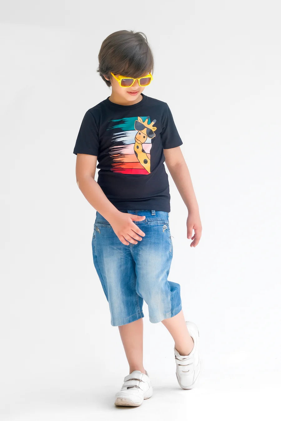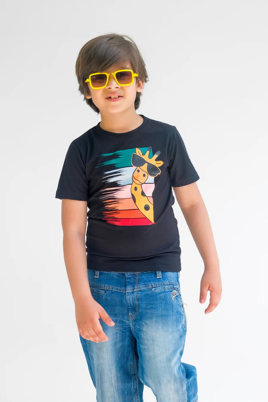 Charming Giraffe - Half Sleeves T-Shirts For Kids - Black