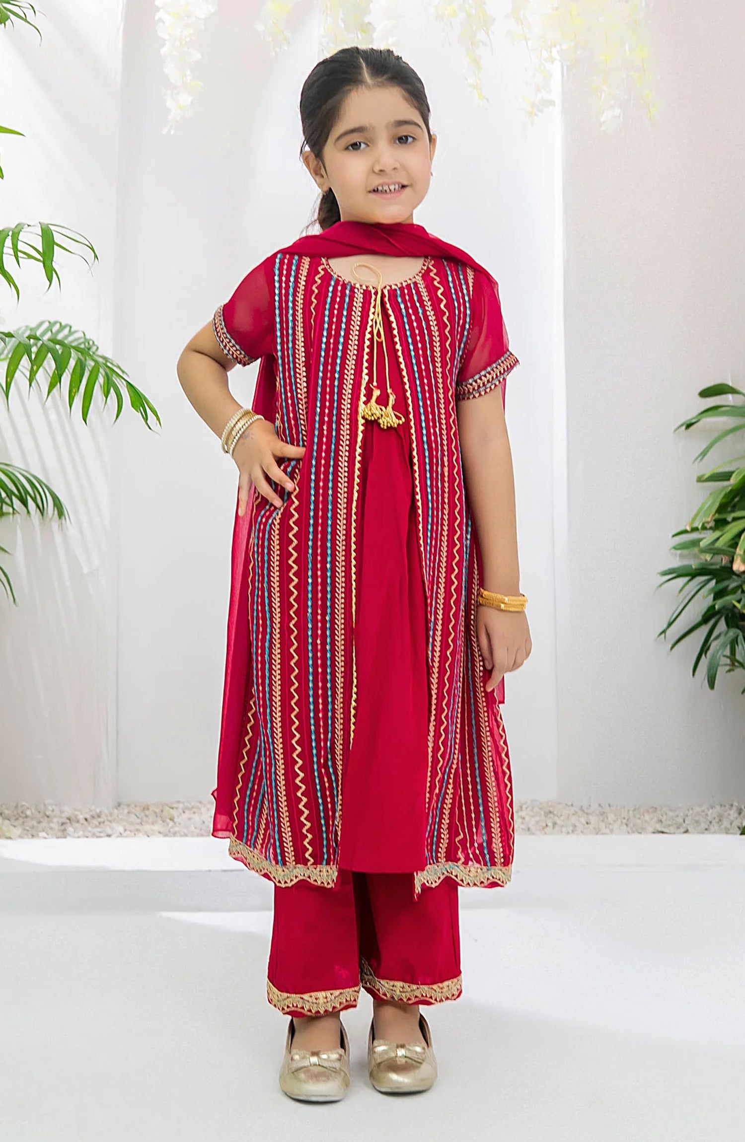 Home Chiffon Embroidered 3 Pc Suit OCH26ES INCF-43 Red