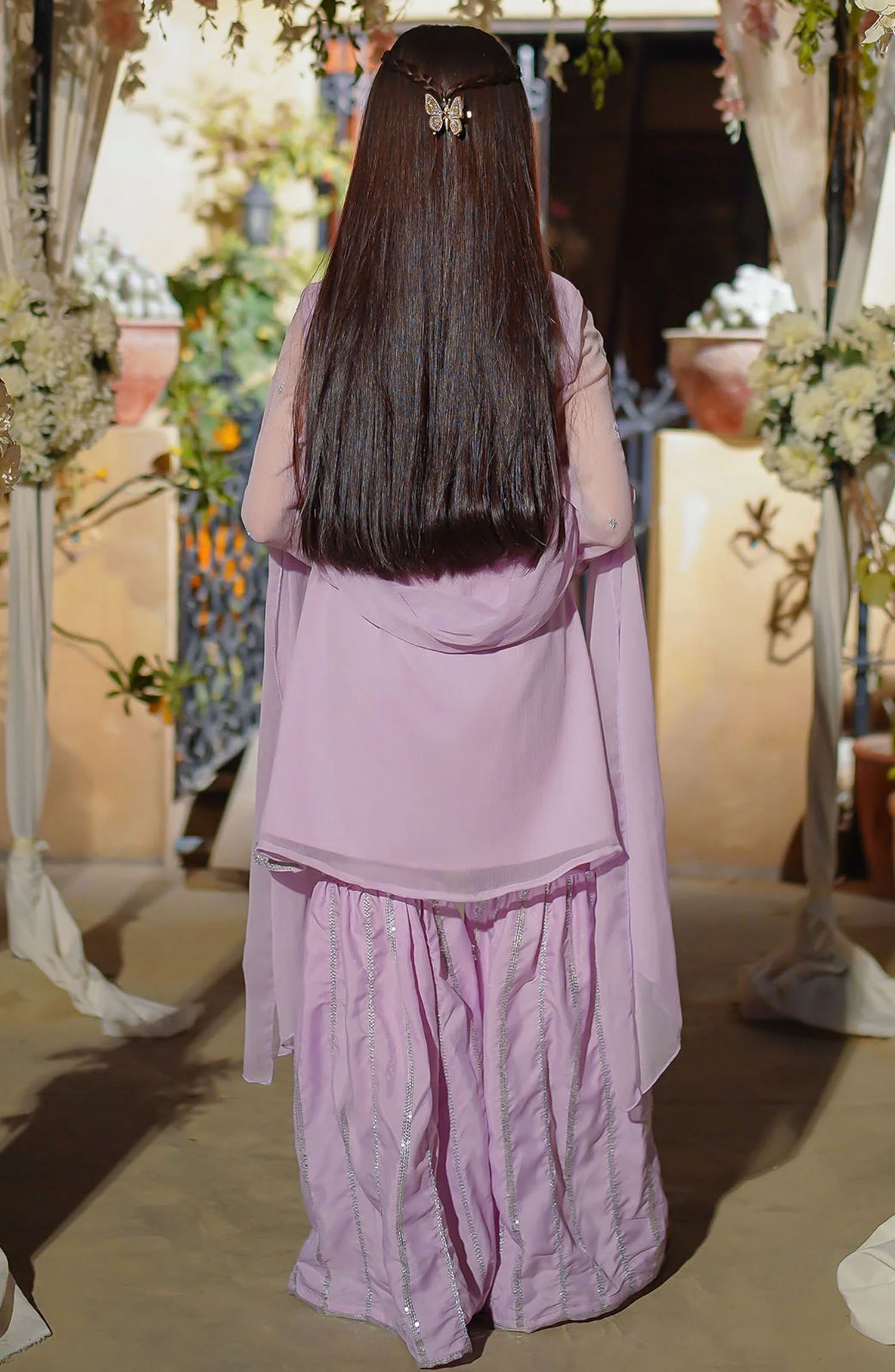Bottom: Lavendar Malai Crepe Gharara Pants with Gotta Work