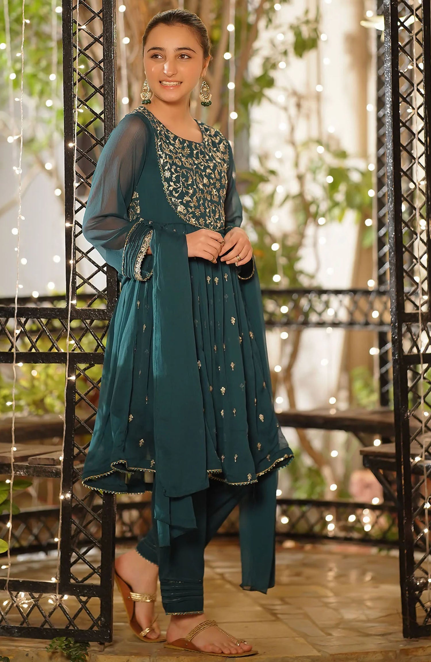 Chiffon Embroidered 3 Piece Suit - EM-54 - OCH25GFS - Green - Casual Collection
