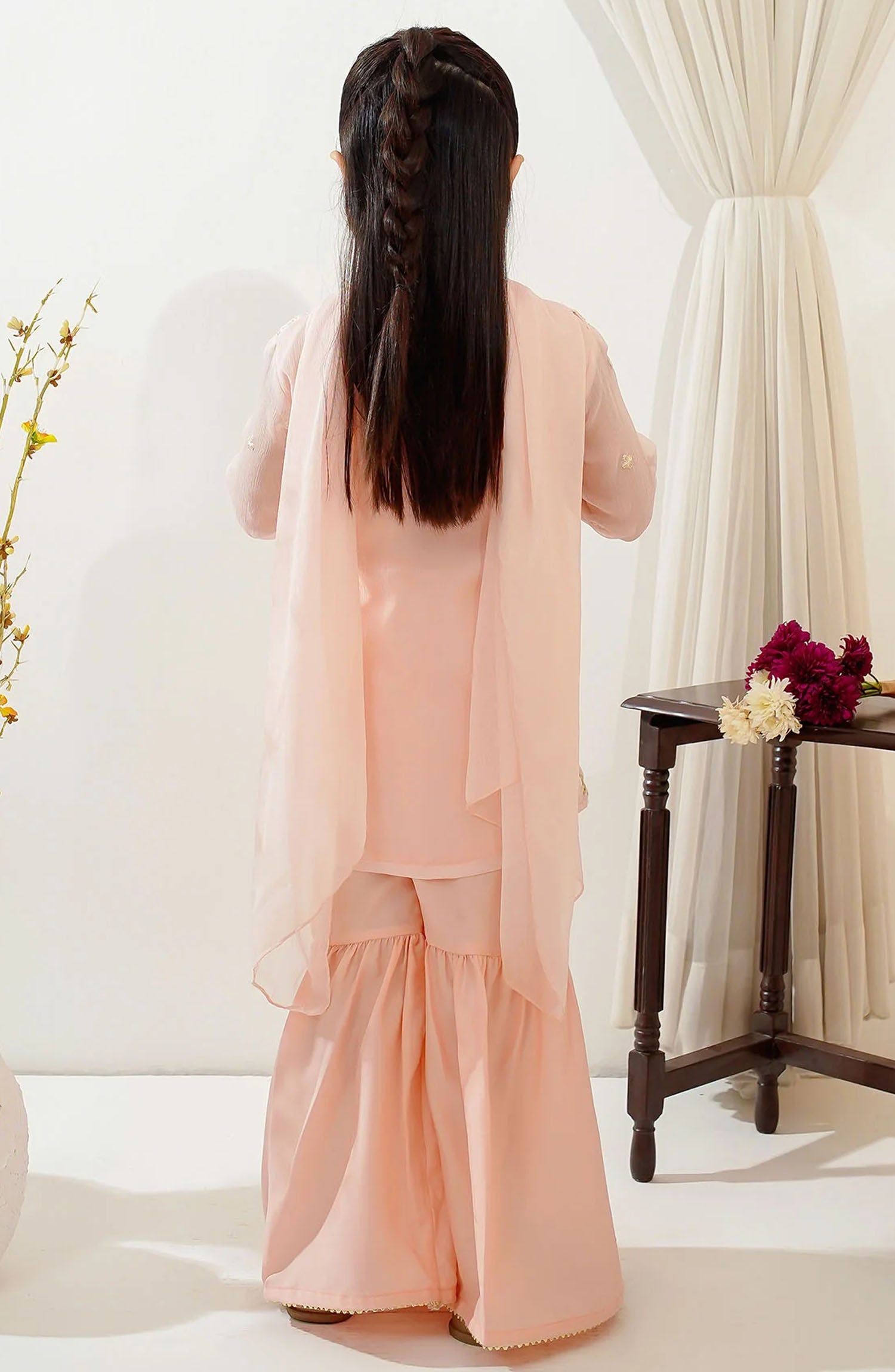 Bottom: Peach Malai Crepe Gharara With Laces