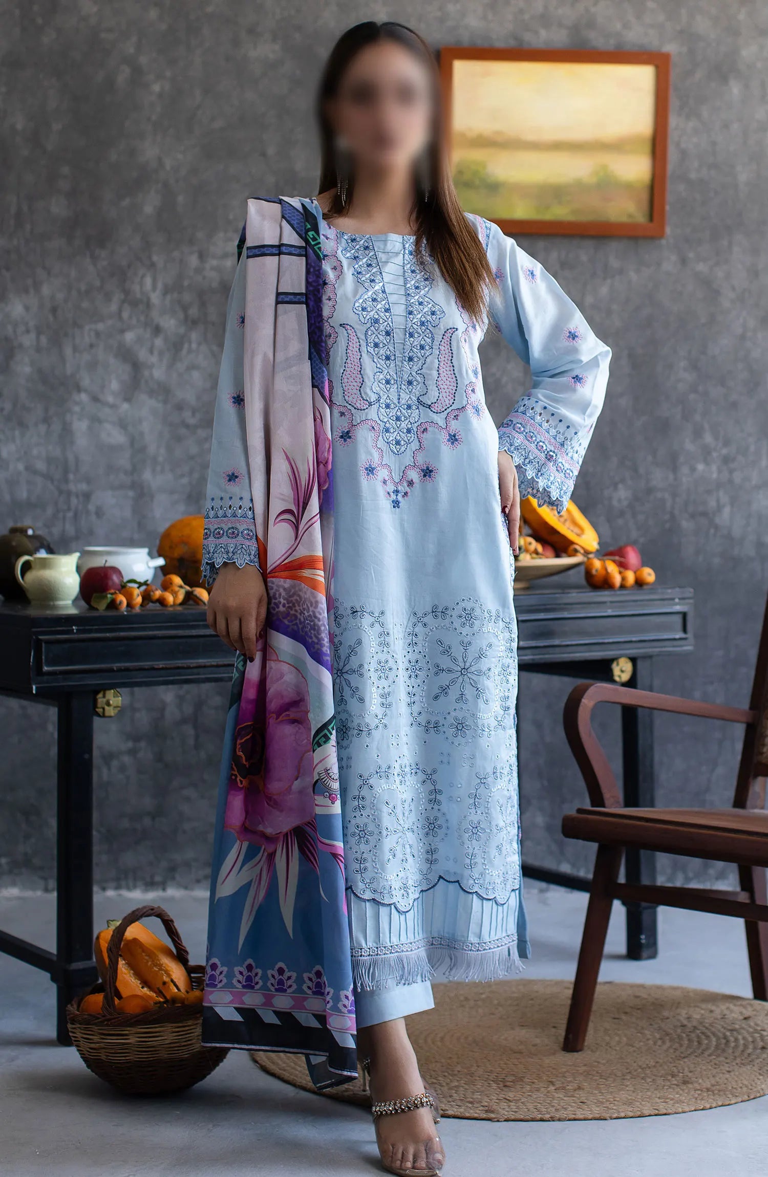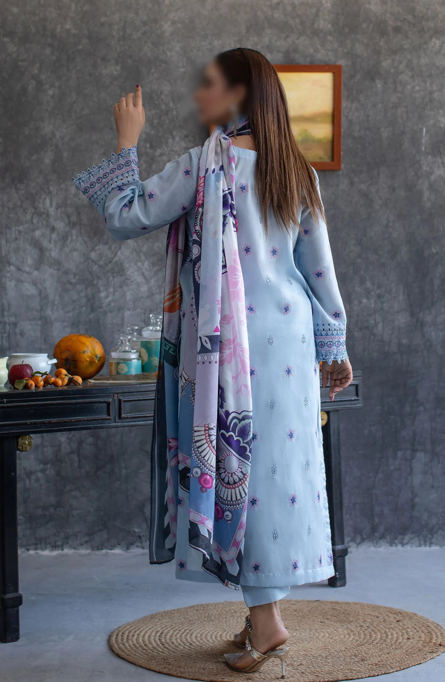 Sadabahar Signature Embroidered Khaddar Stitched 3 Piece Suit - Design-06 - SBD25SNA - Light Blue - Winter Collection
