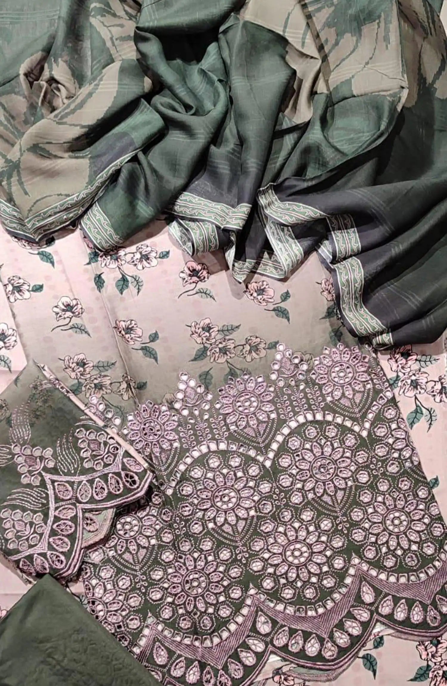 Unstitch 3 piece Chikankari Viscose Suit with Digital Diamond Voile Dupatta, Viscose Trouser.