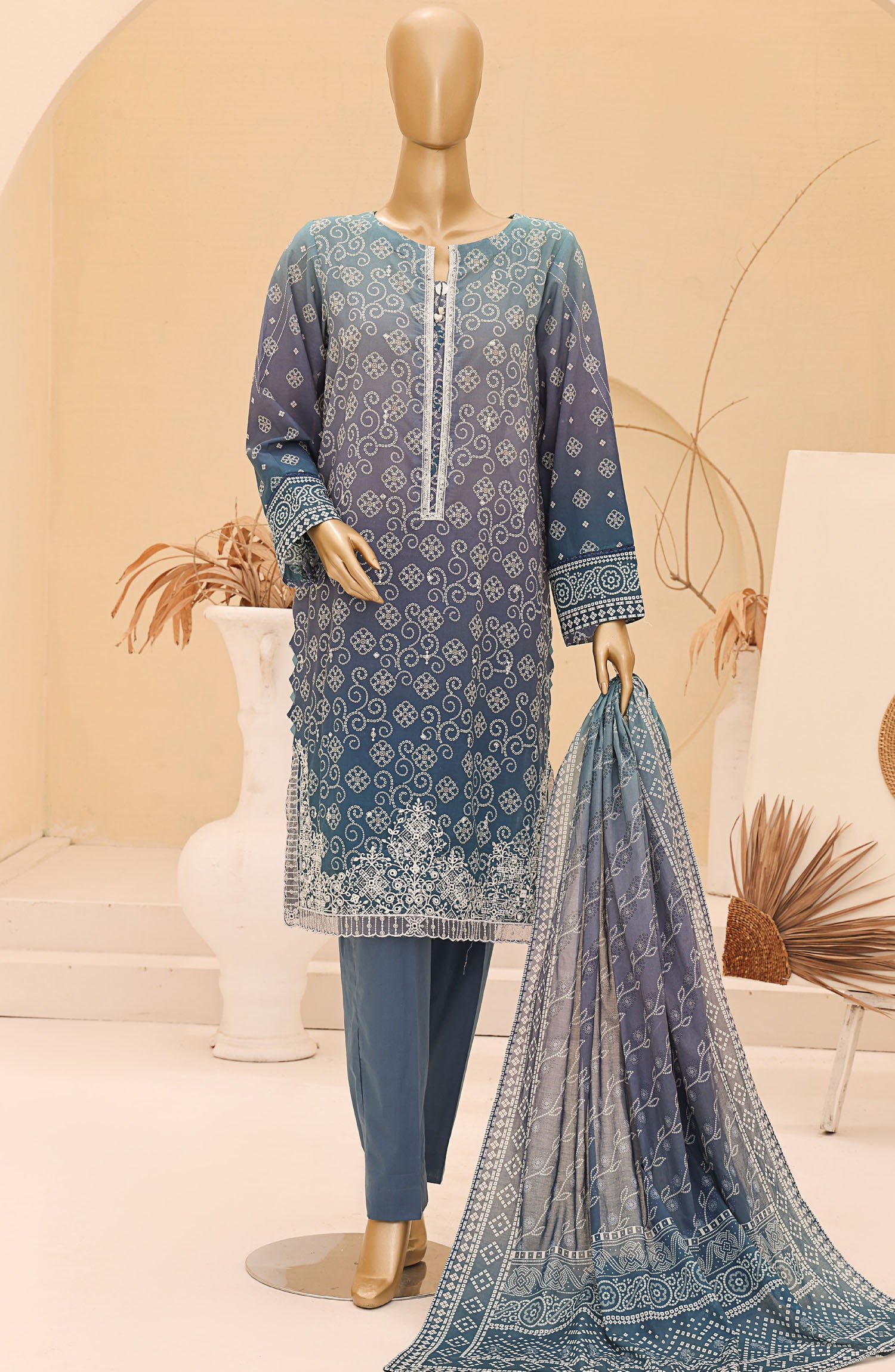 Chunri by HZ Textile Embroidered Lawn Unstitched 3 Piece Suit - CEC-921 - HZ25CHNEL - Blue - Summer Collection