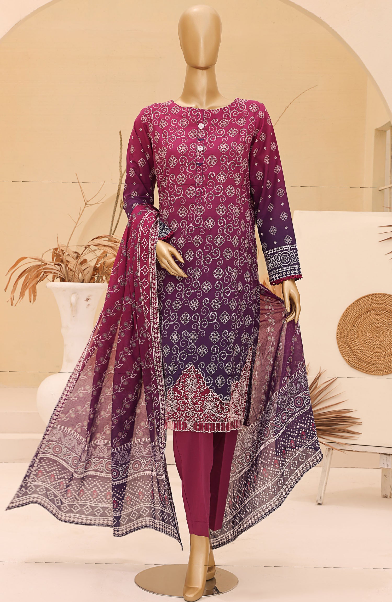 Home Chunri by HZ Textile Embroidered Lawn Unstitched 3 Piece Suit - CEC-922 - HZ25CHNEL - Purple - Summer Collection