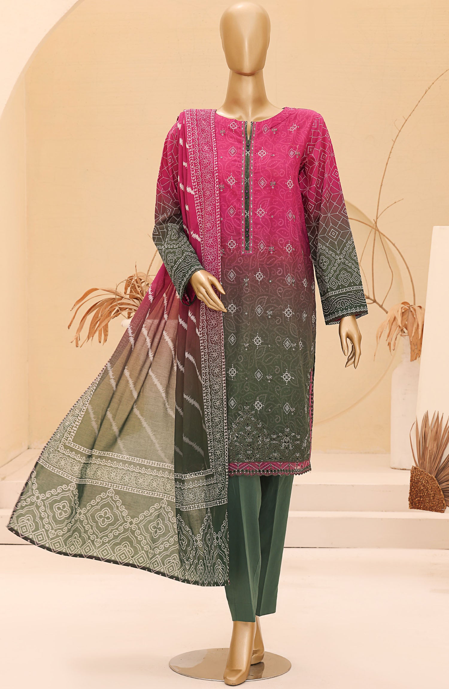 Home Chunri by HZ Textile Embroidered Lawn Unstitched 3 Piece Suit - CEC-923 - HZ25CHNEL - Pink - Summer Collection