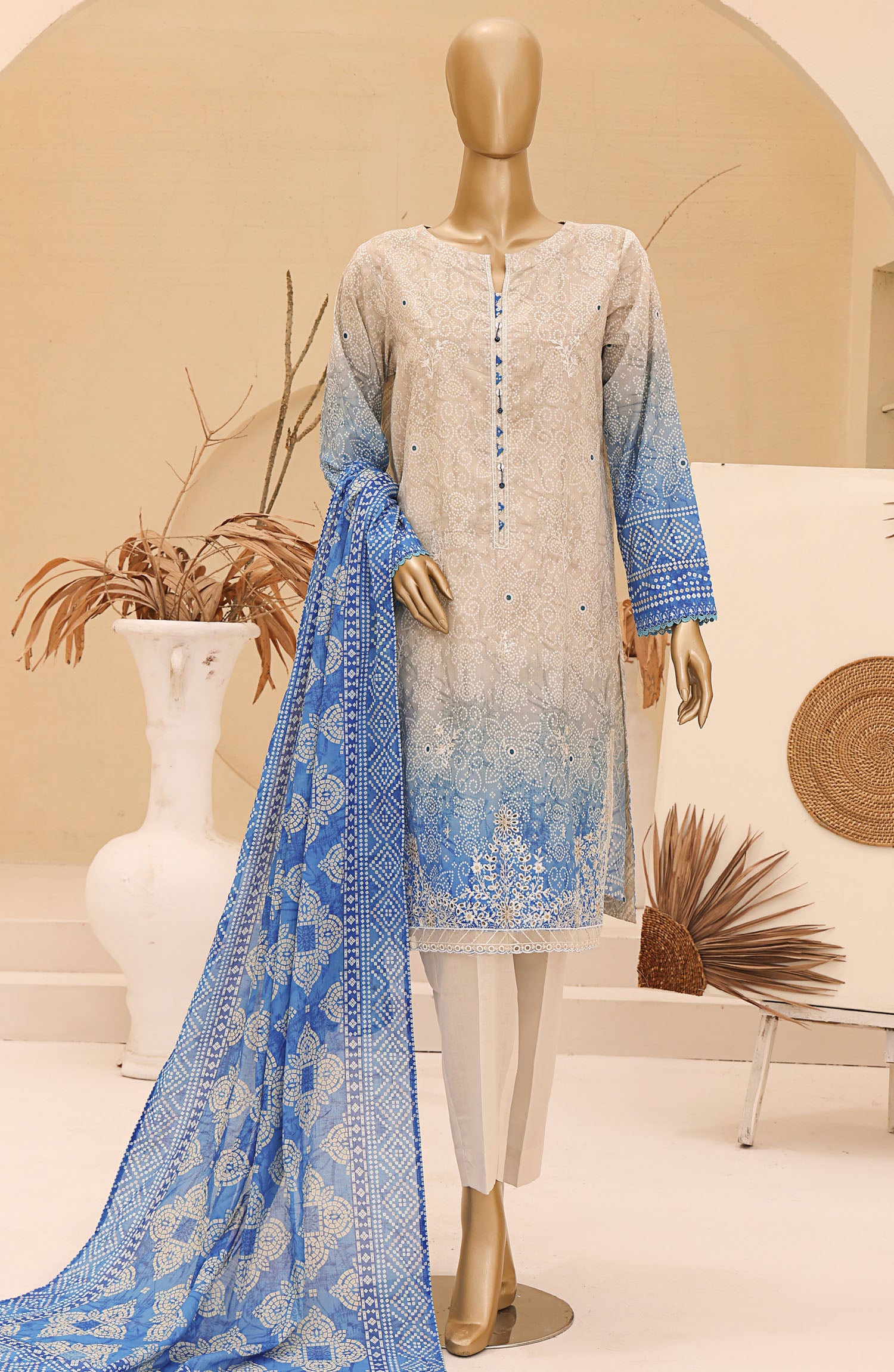 Chunri by HZ Textile Embroidered Lawn Unstitched 3 Piece Suit - CEC-925 - HZ25CHNEL - Grey - Summer Collection
