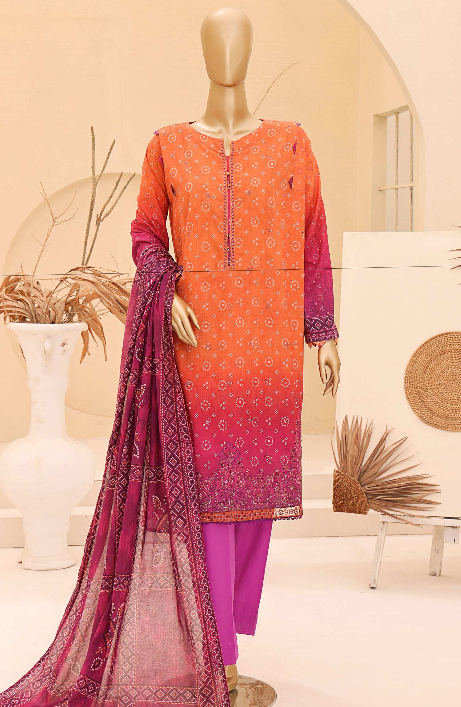 Home Chunri by HZ Textile Embroidered Lawn Unstitched 3 Piece Suit - CEC-927 - HZ25CHNEL - Orange - Summer Collection