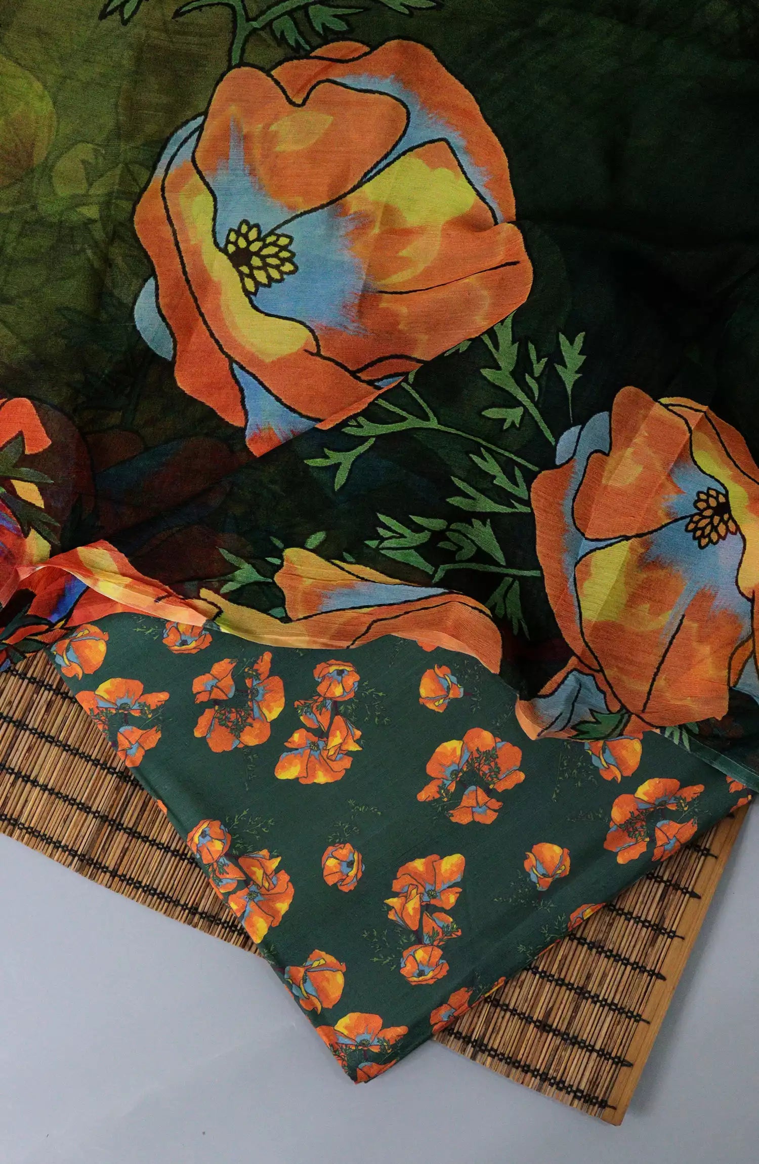 Modest Printed Cotton Stitched 3 Piece Suit - 9755-Prpl - MOD25PRF - Purple - Festive Girls Collection