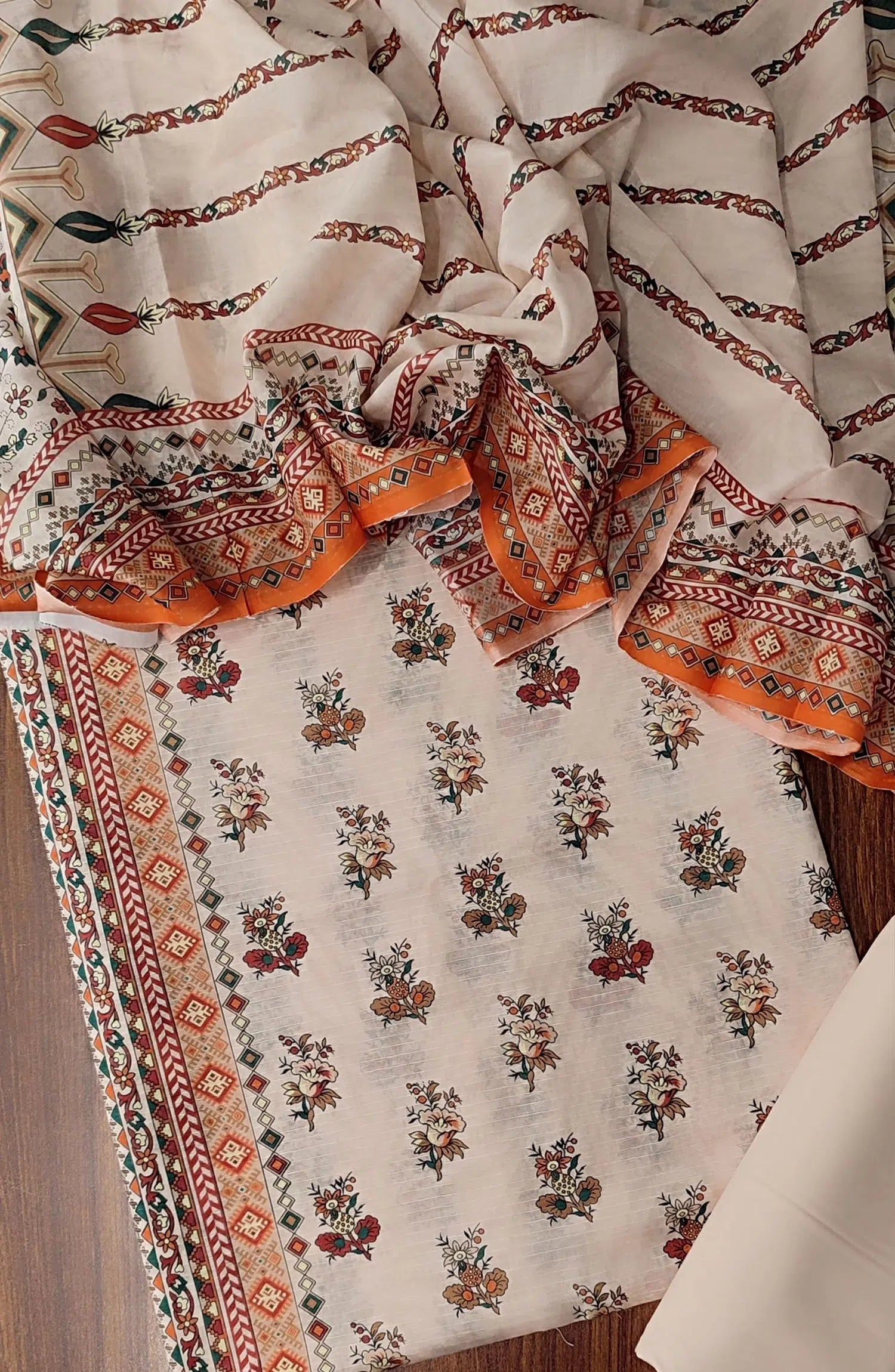 3 Piece printed Doria lawn suit with Printed Voile dupatta.