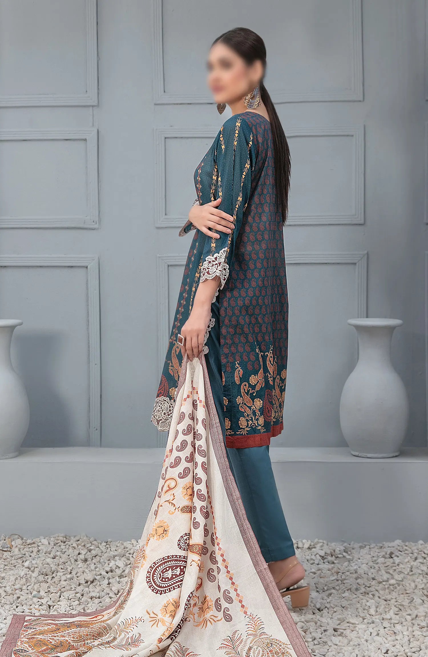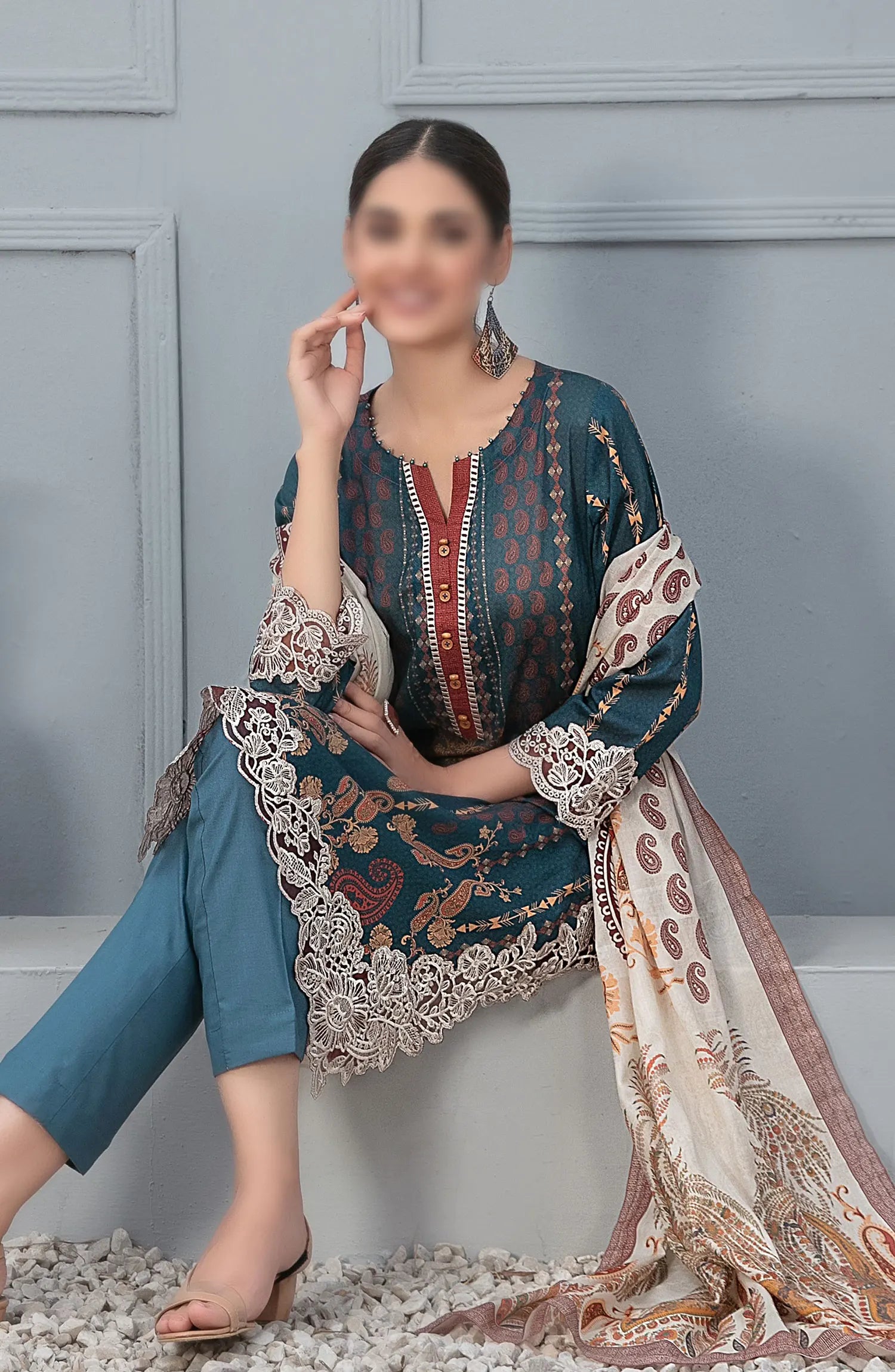 Modest Embroidered Khaddar Stitched 3 Piece Suit - 10040-Pnk - MOD25WNT - Pink - Winter Collection