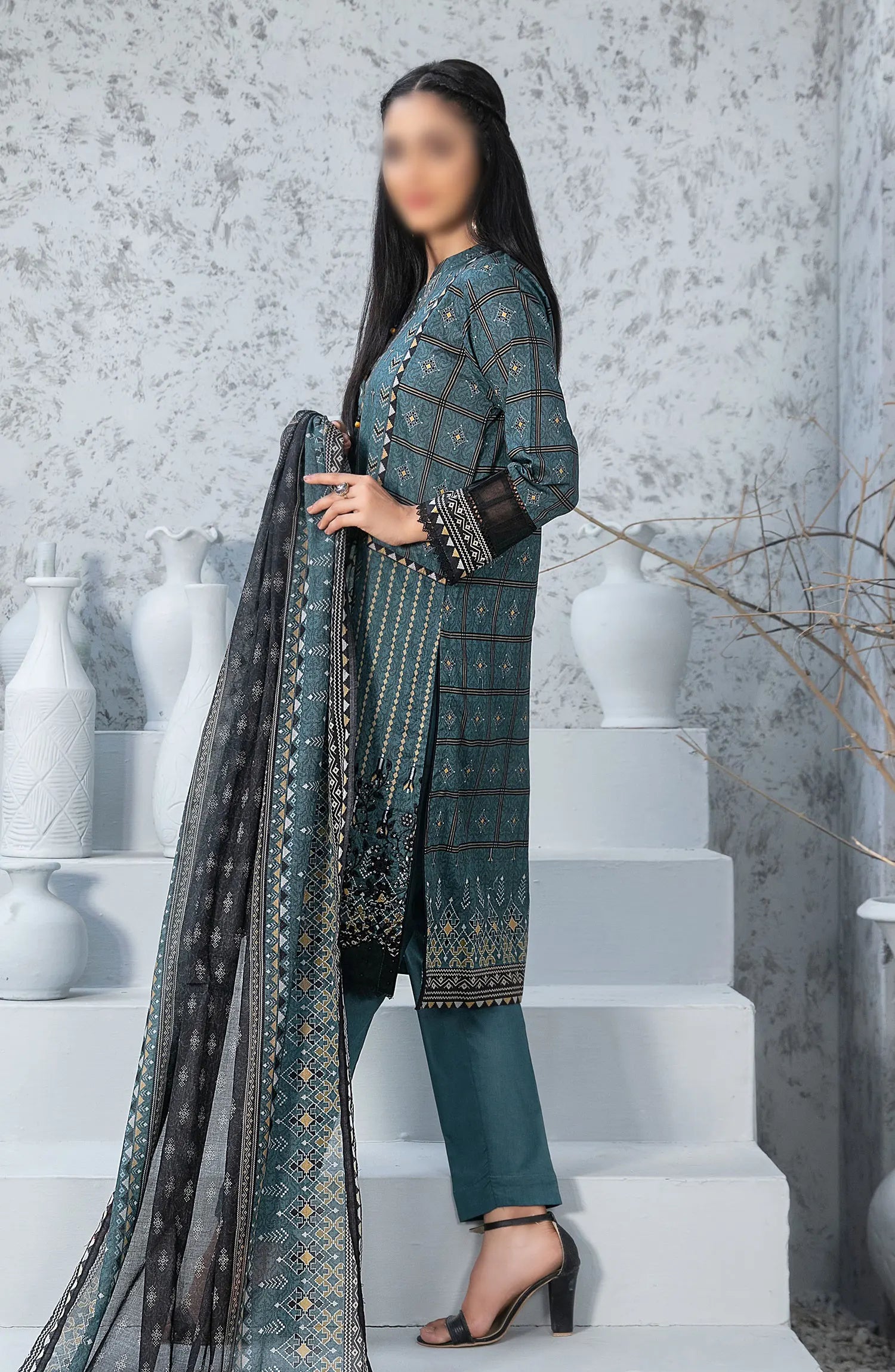 Modest Embroidered Khaddar Stitched 3 Piece Suit - 9990-Blk - MOD25WNT - Black - Winter Collection