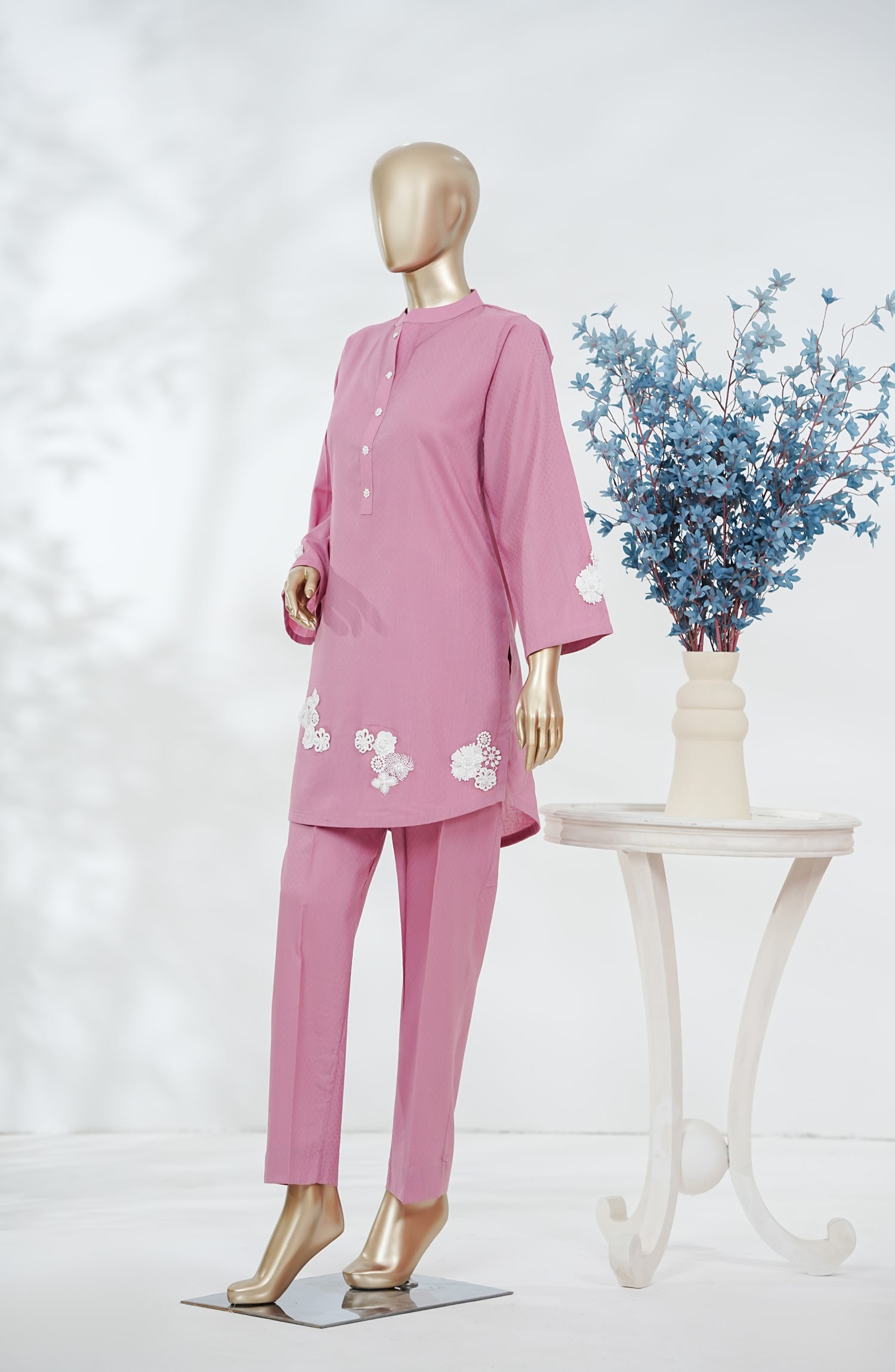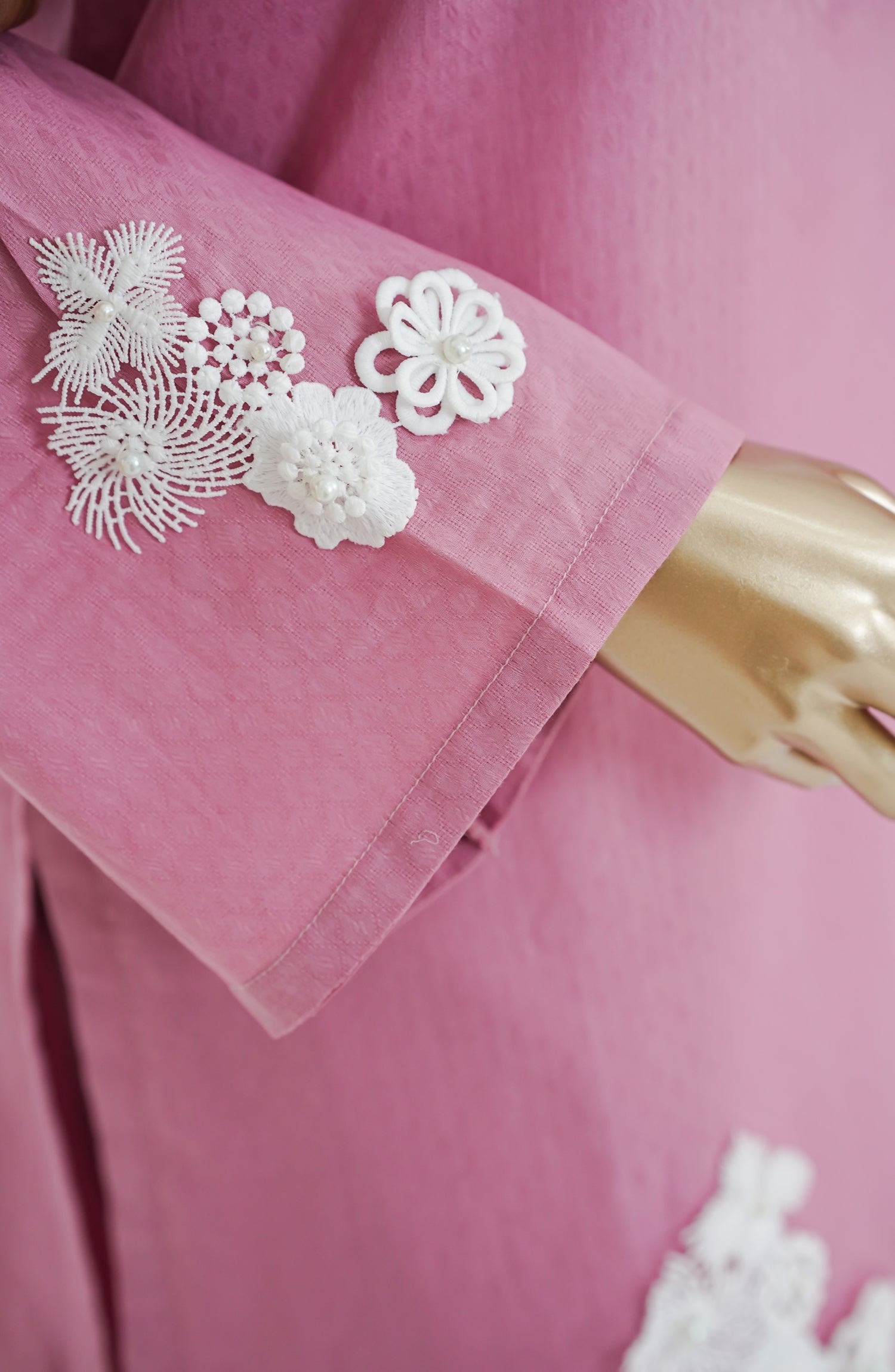 Jacquard Stitched Shirt with Embellishments and 3D flowers
