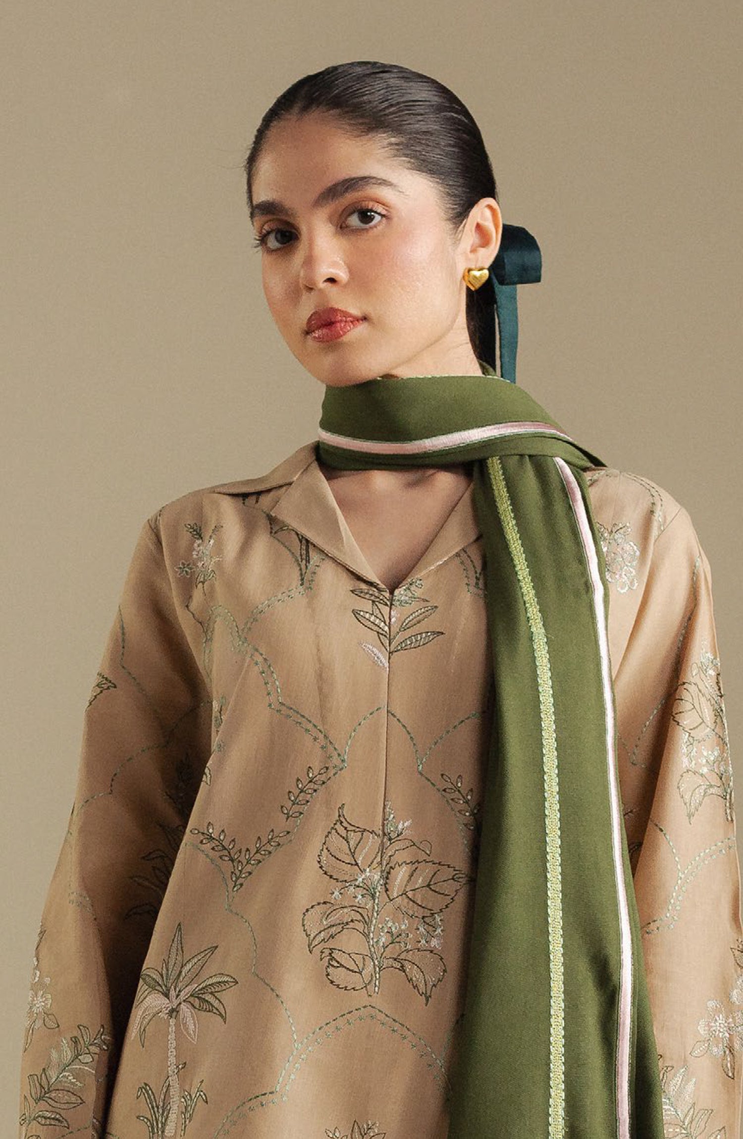Embroidered Wool Peach Shawl Pallu 2 Pcs 0.66 Mtr