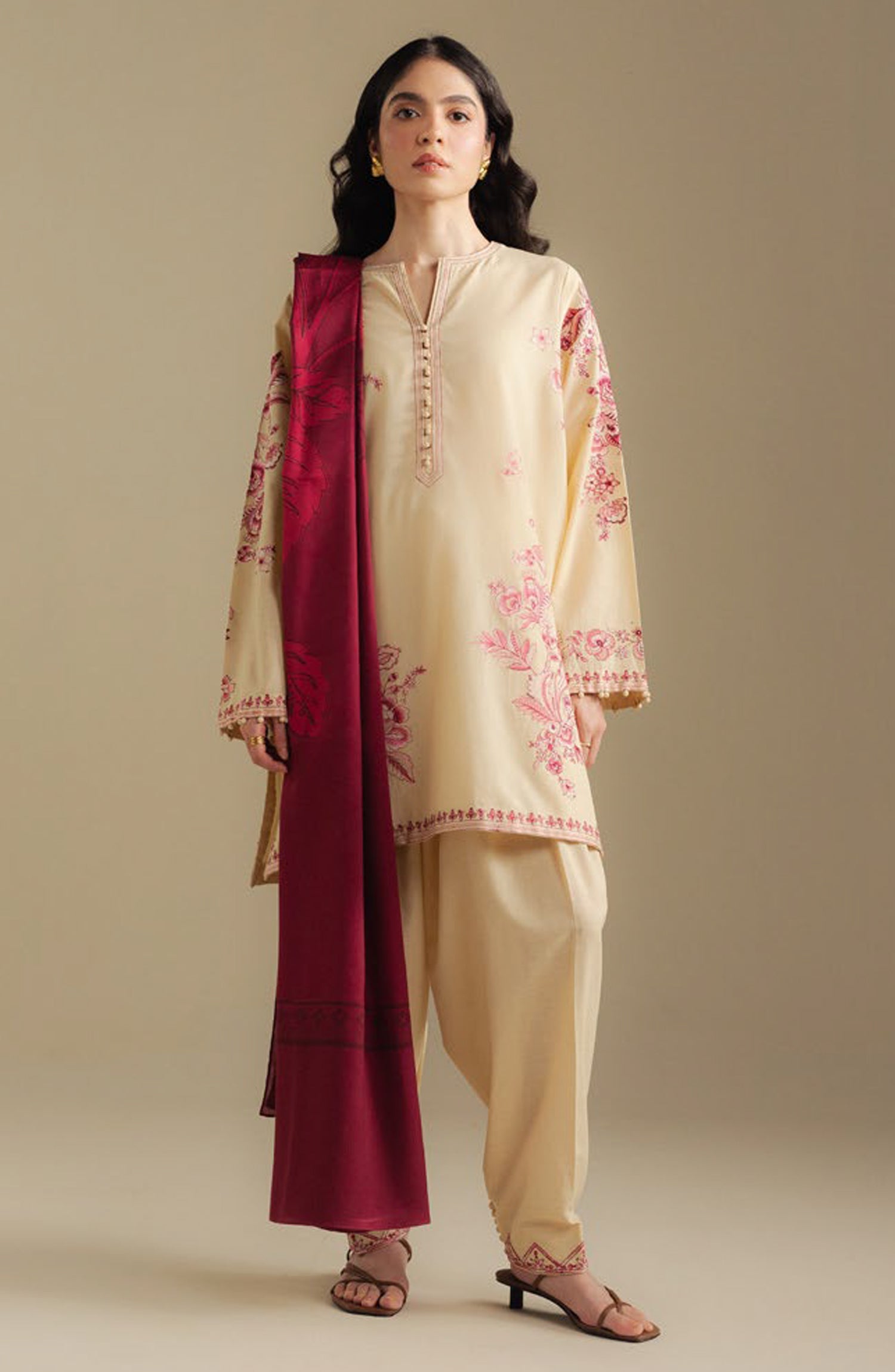 Embroidered Plain Khaddar Neps Trouser 2 Mtrs