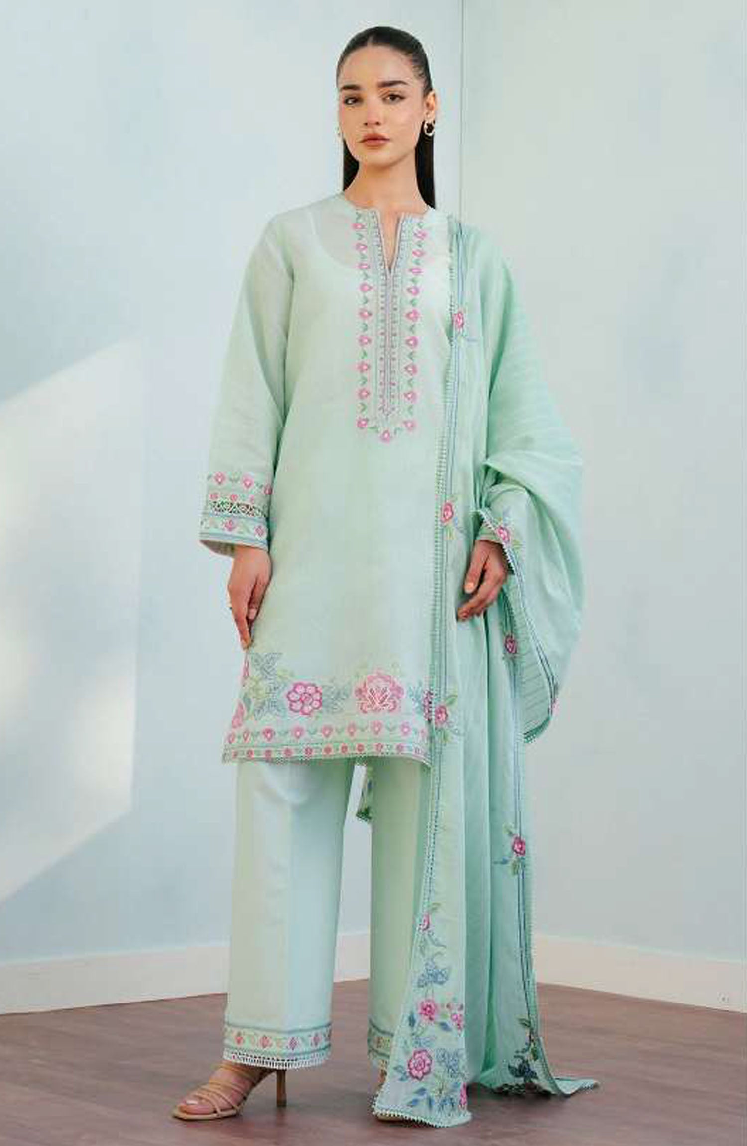 The standard style comes as a long-sleeved kameez with dupatta and trouser/shawlar.