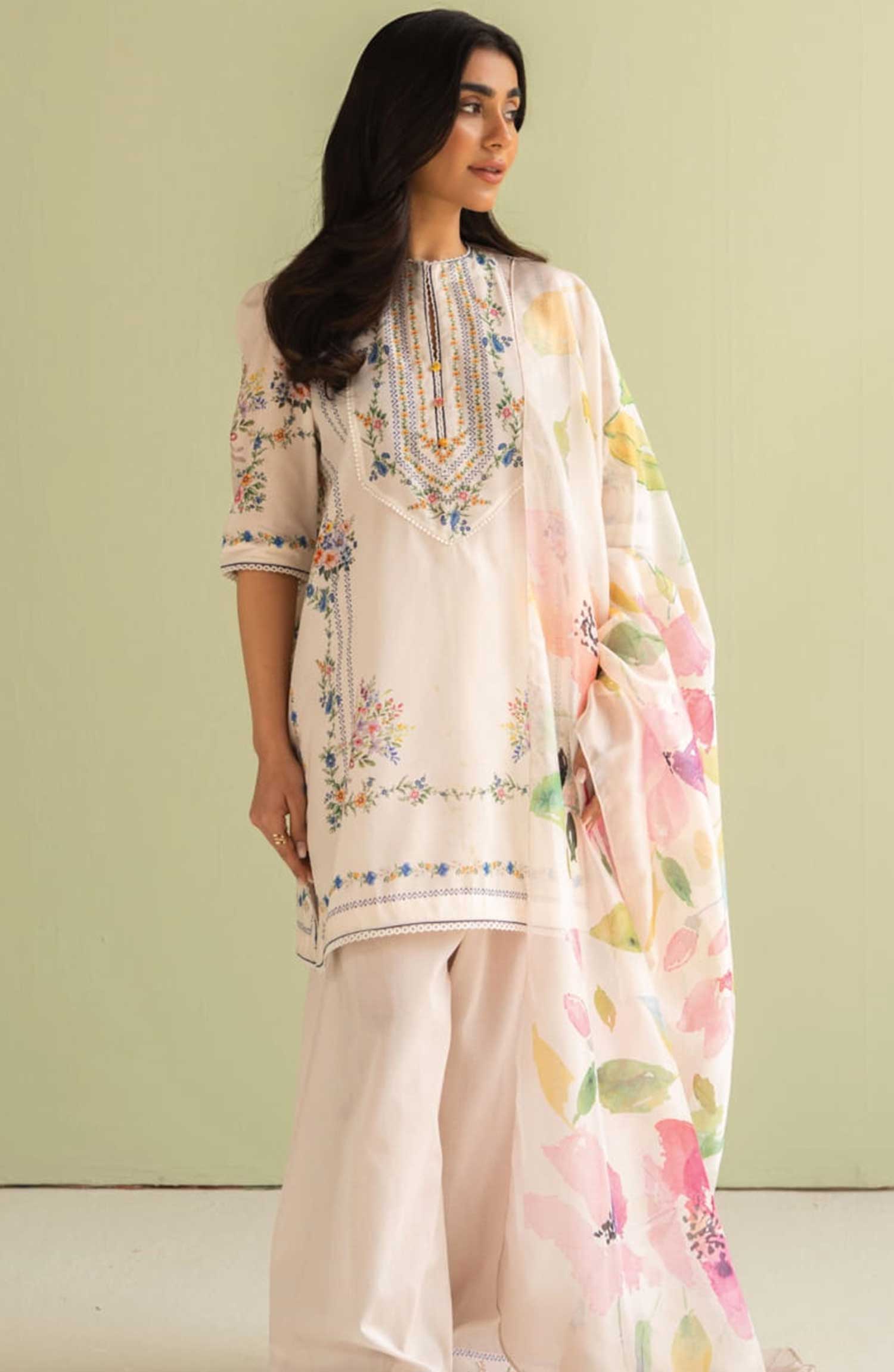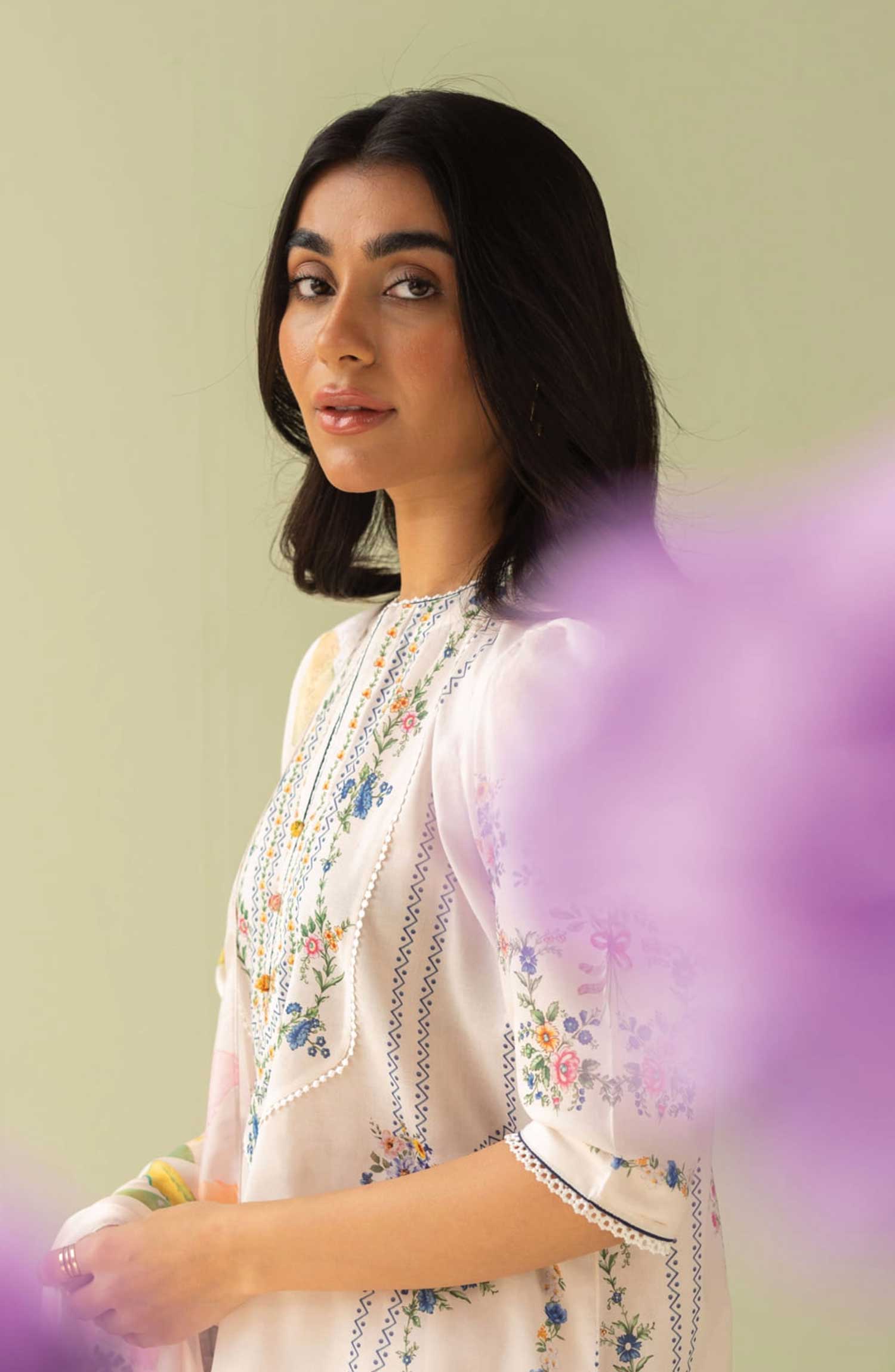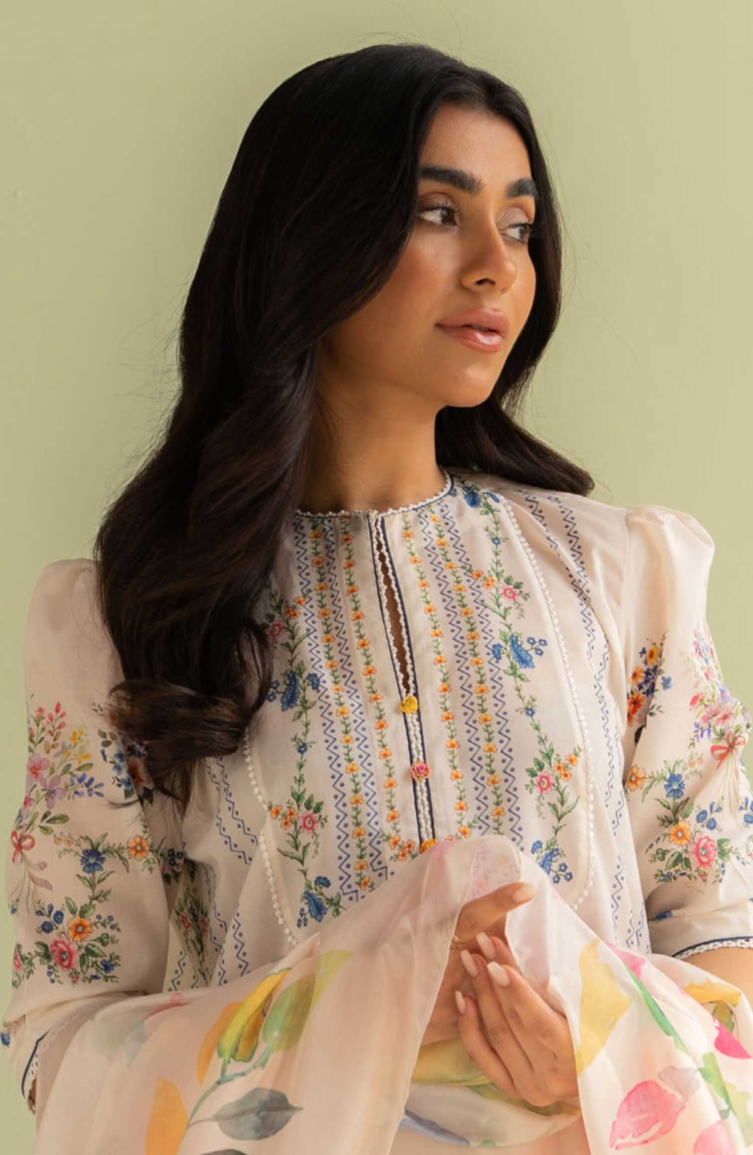 Coco Prints by Zara ShahJahan Printed Lawn Unstitched 3 Piece - D-3 A Ria - ZS25PL - White - Summer Collection