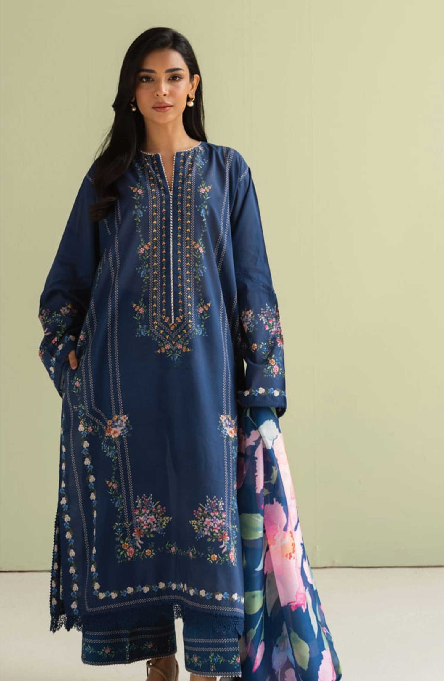 Coco Prints by Zara ShahJahan Printed Lawn Unstitched 3 Piece - D-3 B Ria - ZS25PL - Dark Blue - Summer Collection