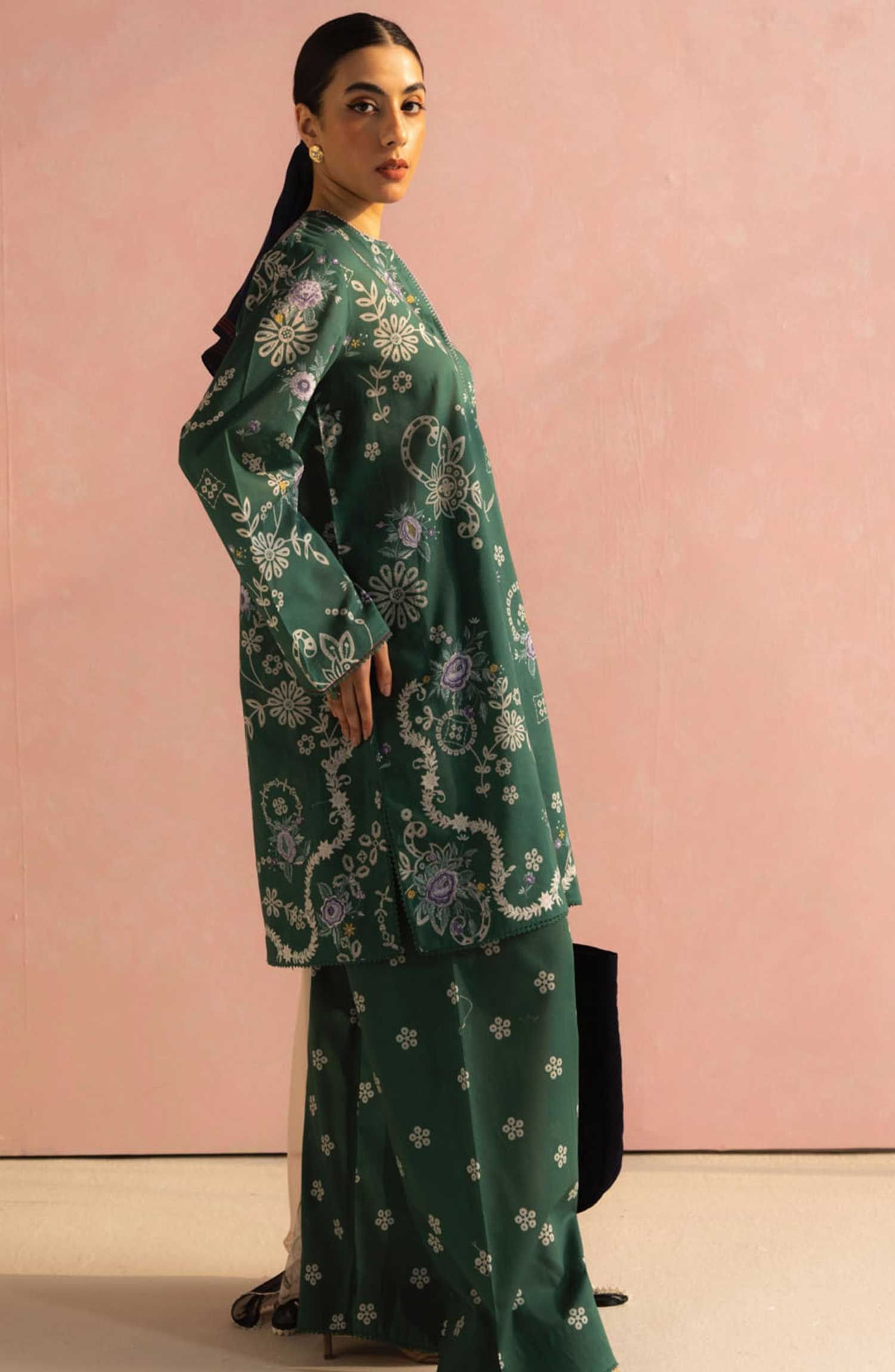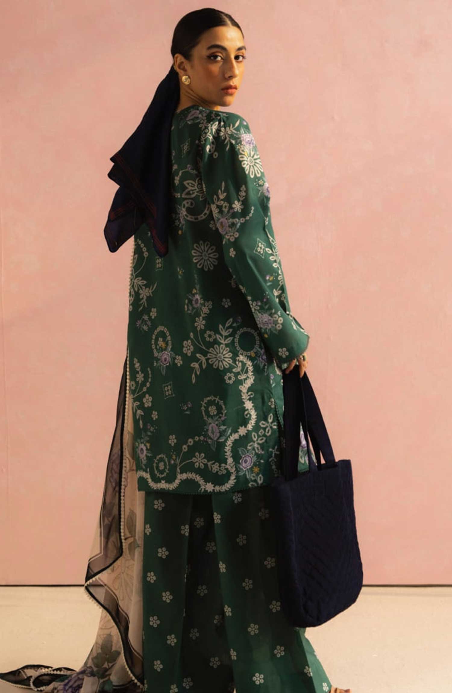 Coco Prints by Zara ShahJahan Printed Lawn Unstitched 3 Piece - D-8 B Nora - ZS25PL - Dark Green - Summer Collection