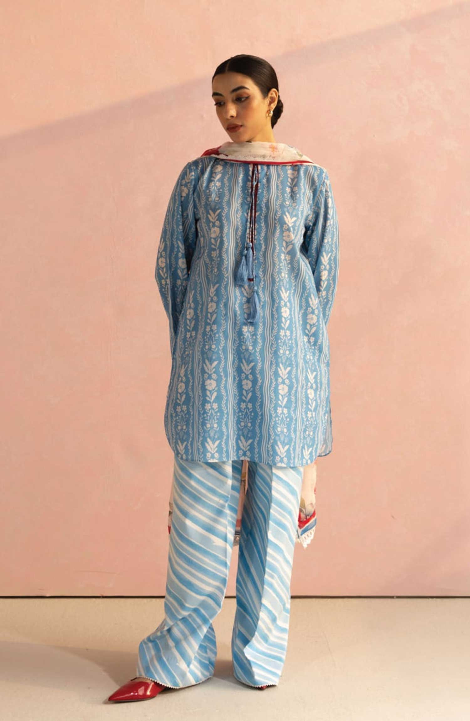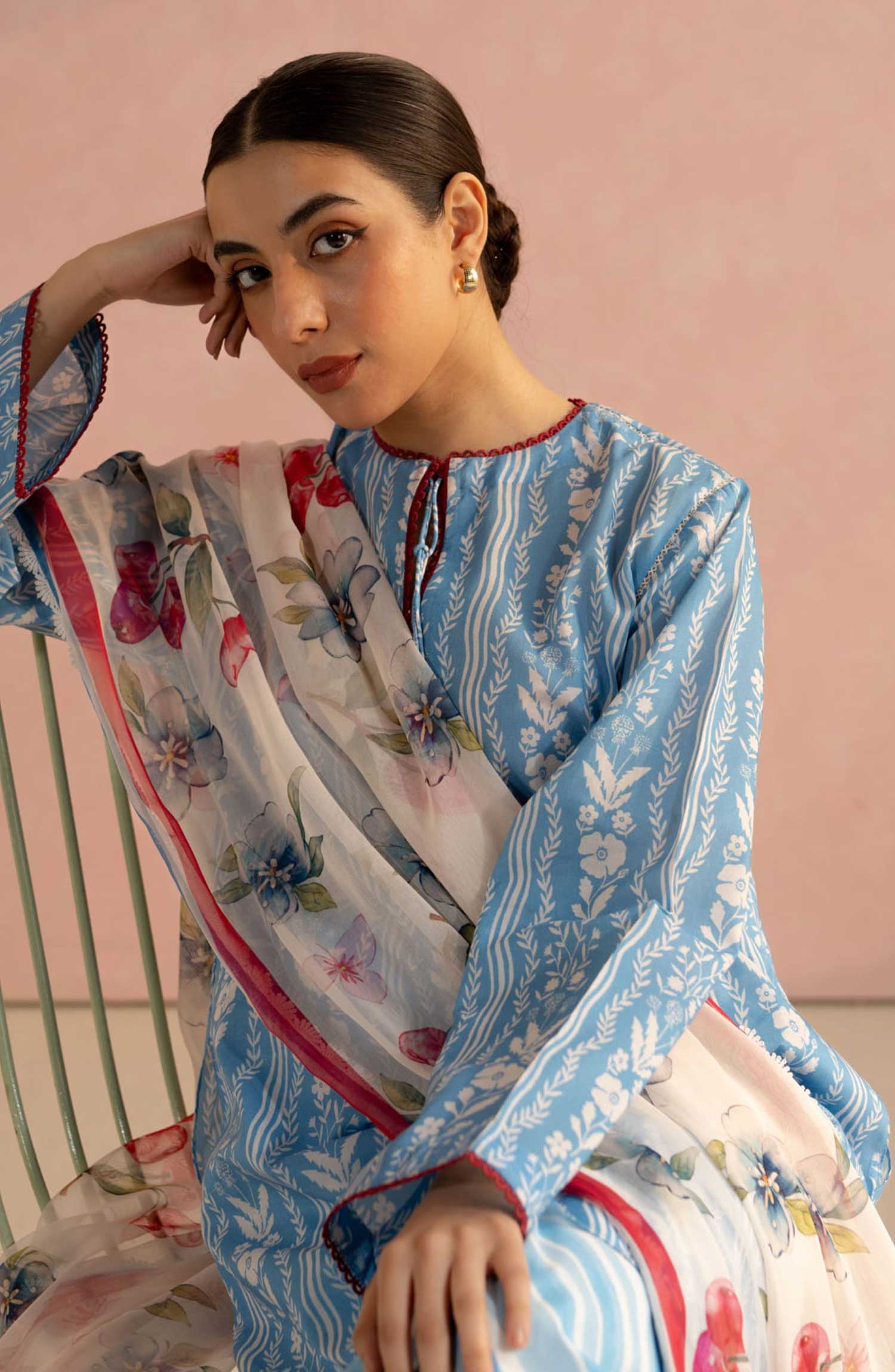 Coco Prints by Zara ShahJahan Printed Lawn Unstitched 3 Piece - D-9 B Ruby - ZS25PL - Sky Blue - Summer Collection