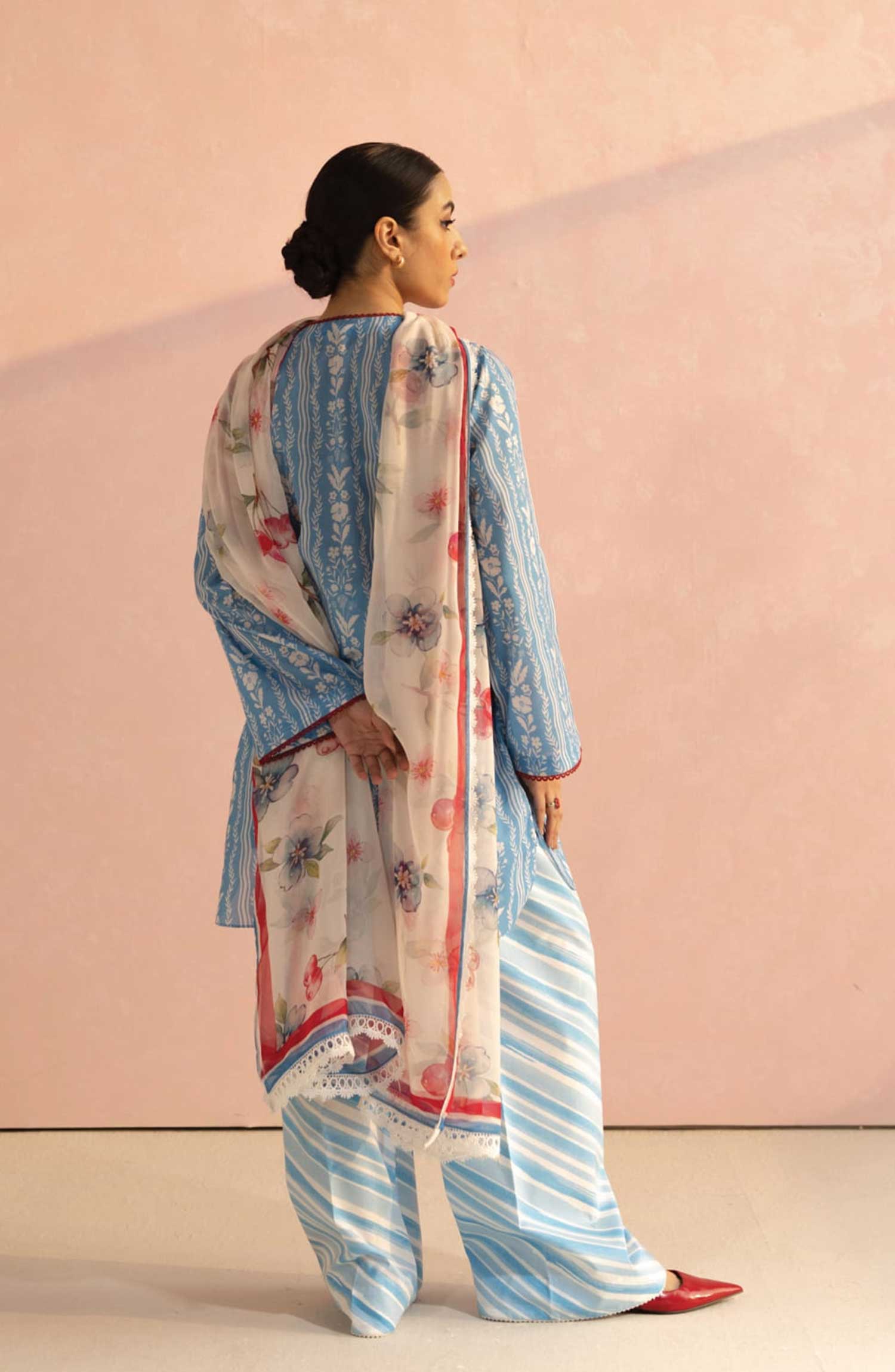 Home Coco Prints by Zara ShahJahan Printed Lawn Unstitched 3 Piece - D-9 B Ruby - ZS25PL - Sky Blue - Summer Collection