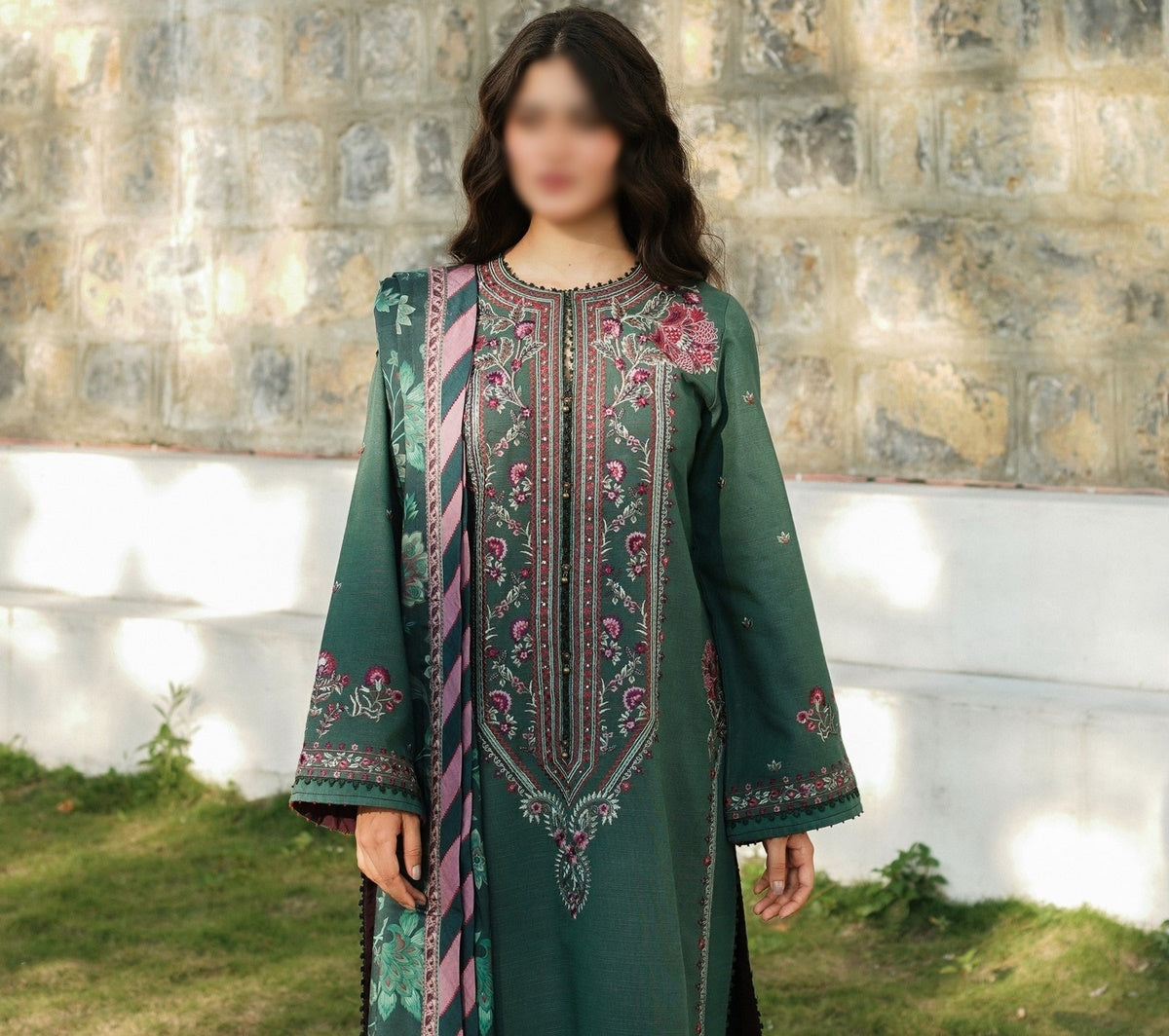 Embroidered neck on Plain Khaddar front 1.38 Yard