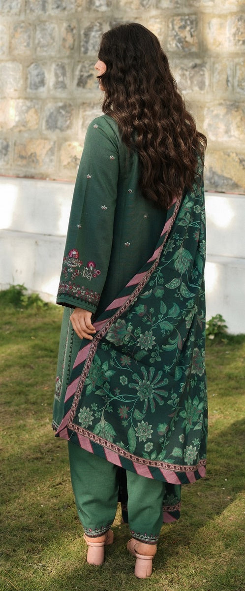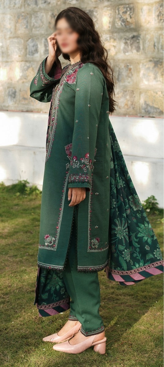 Embroidered Sleeve on Plain Khaddar 1.38 Yard