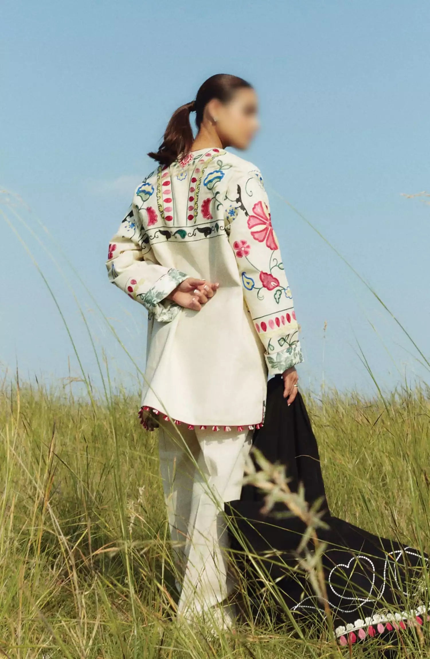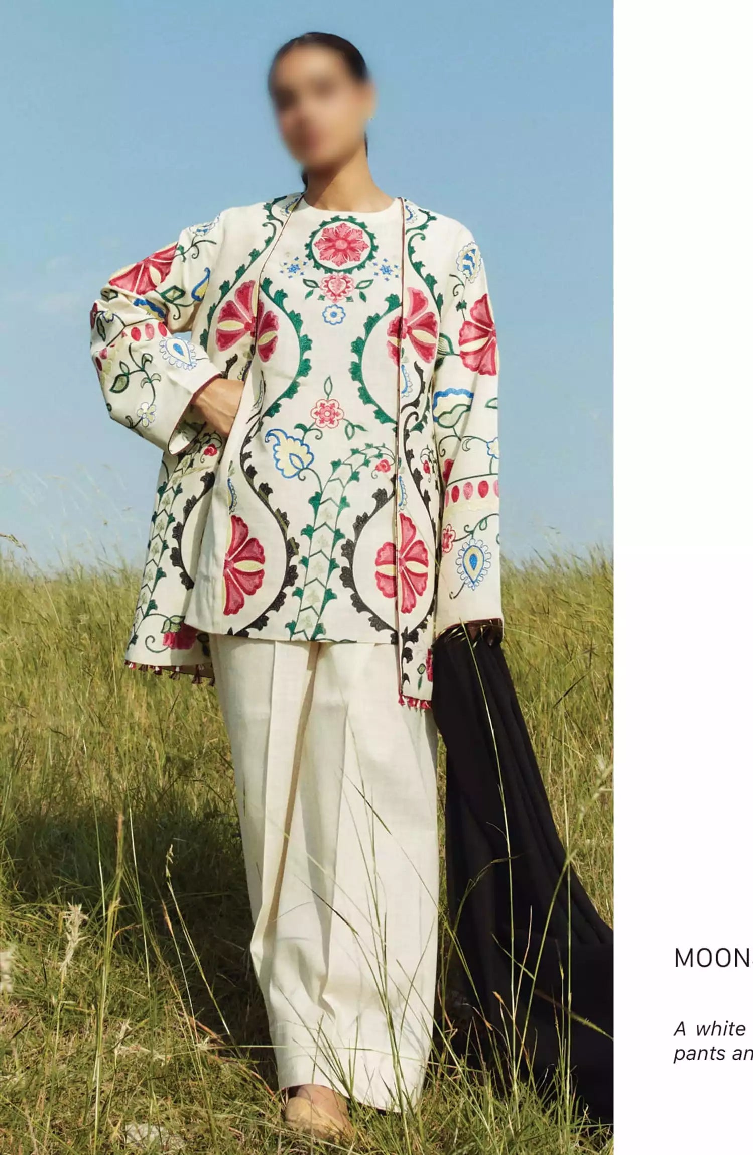pants and an embroidered shawl.