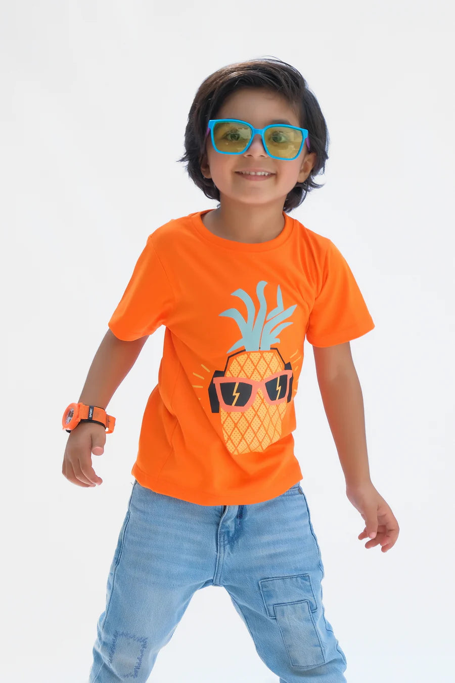Cool Pineapple - Half Sleeves T-Shirts For Kids - Orange - SBT-336