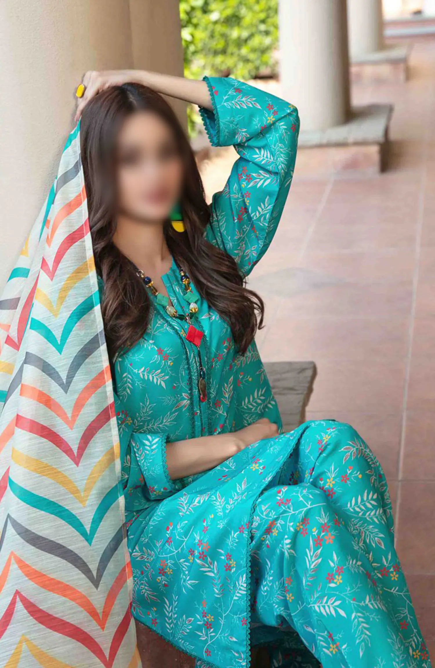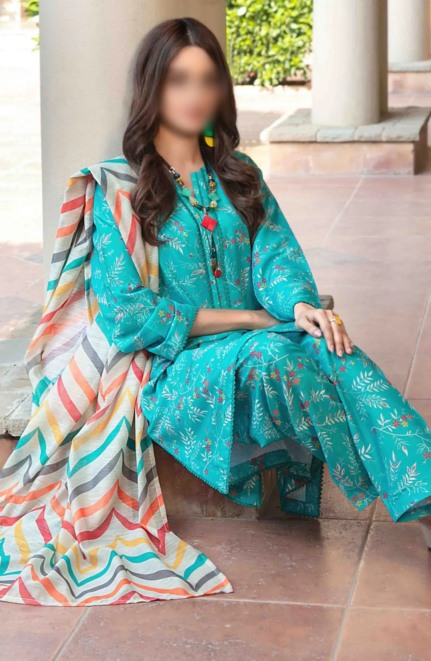 Cora Stitched Digital Printed Swiss 3pcs Collection 2024 has been styled in the image for photography and illustrative purposes.