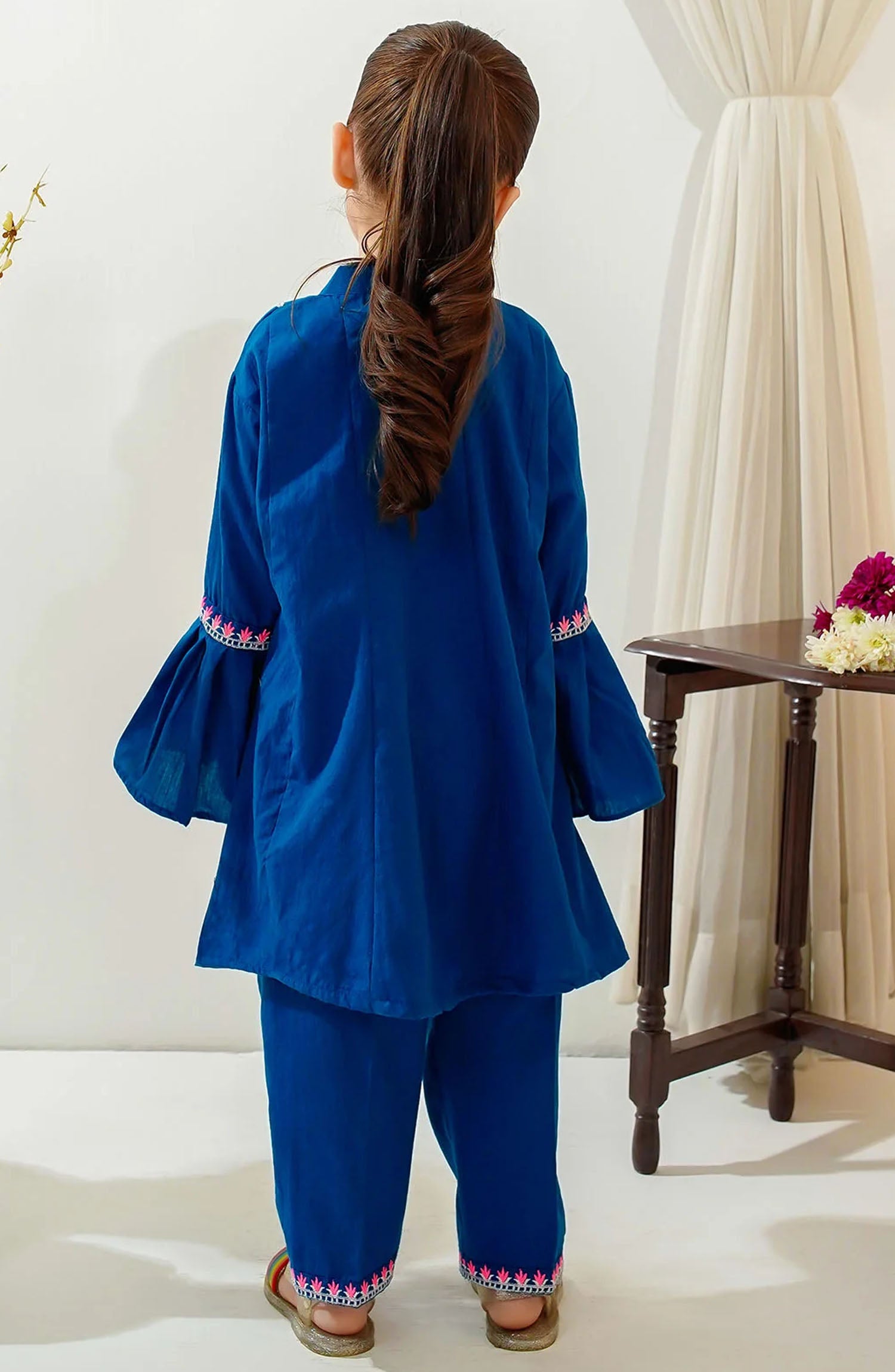 Bottom: Teal Blue Cotton Trouser with Embroidery