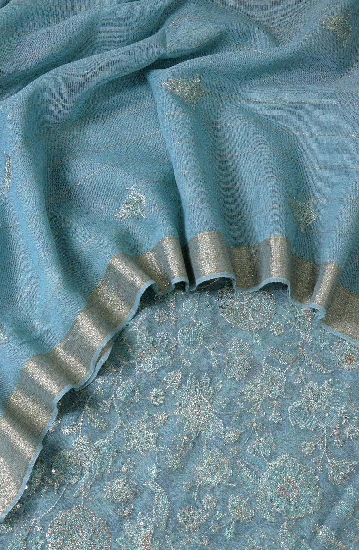 Ayla Embroidered Chambray Stitched 2 Piece Solids - EAE210105E - AY25SW - Sky Blue - Winter Collection