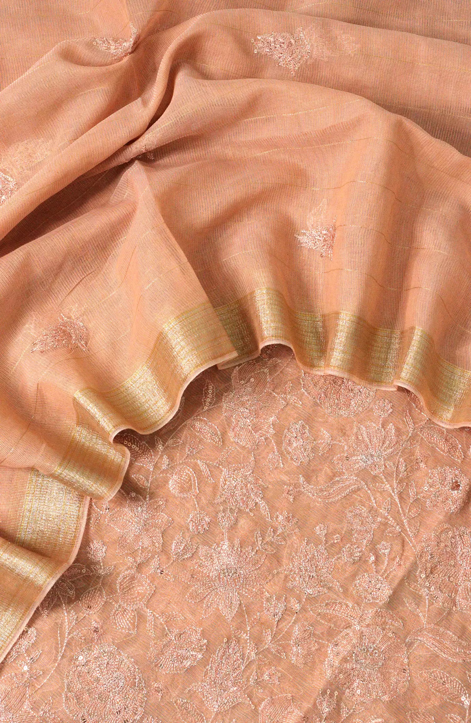 Ayla Embroidered Chambray Stitched 2 Piece Solids - EAE210105D - AY25SW - Beige - Winter Collection