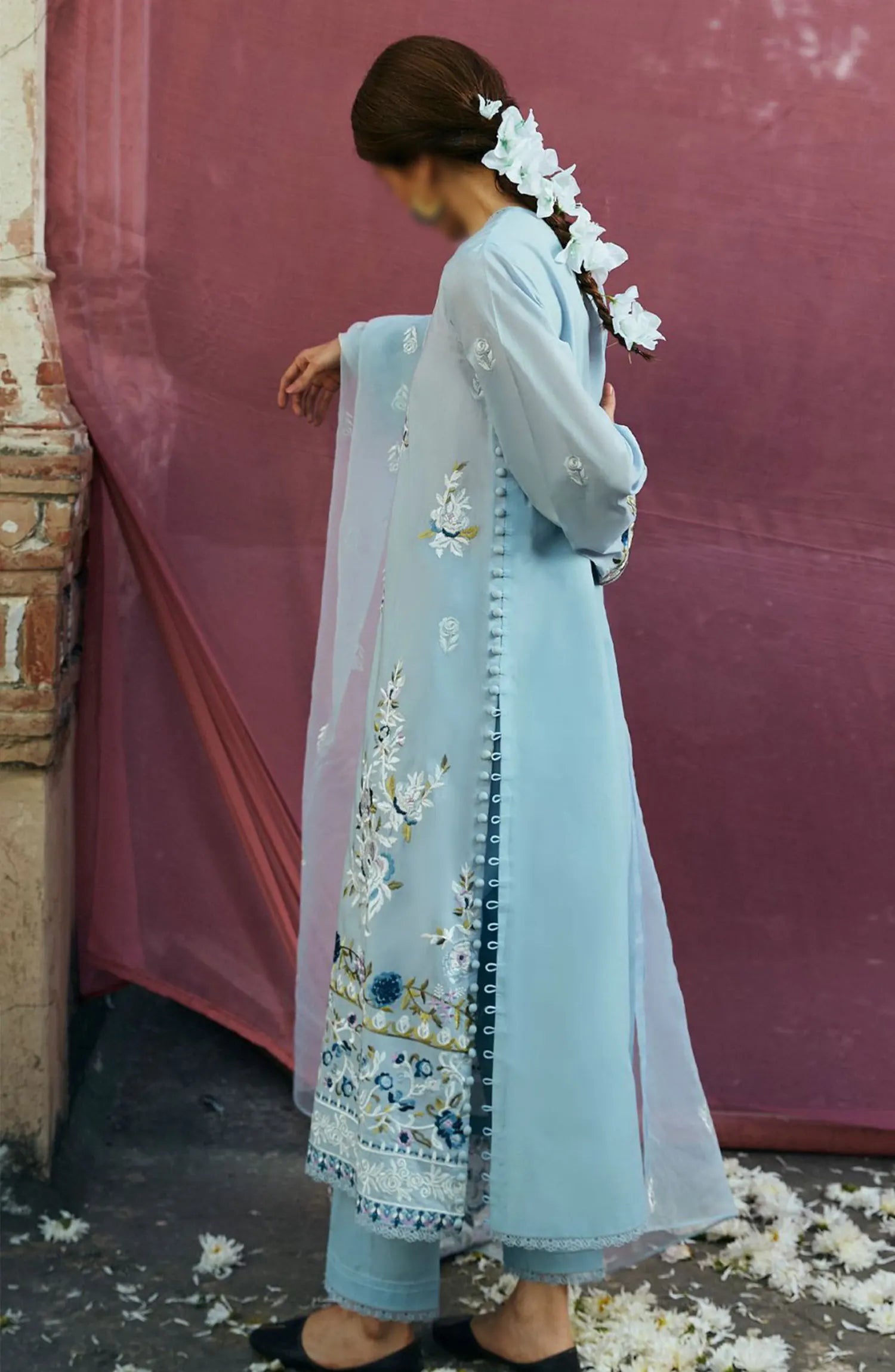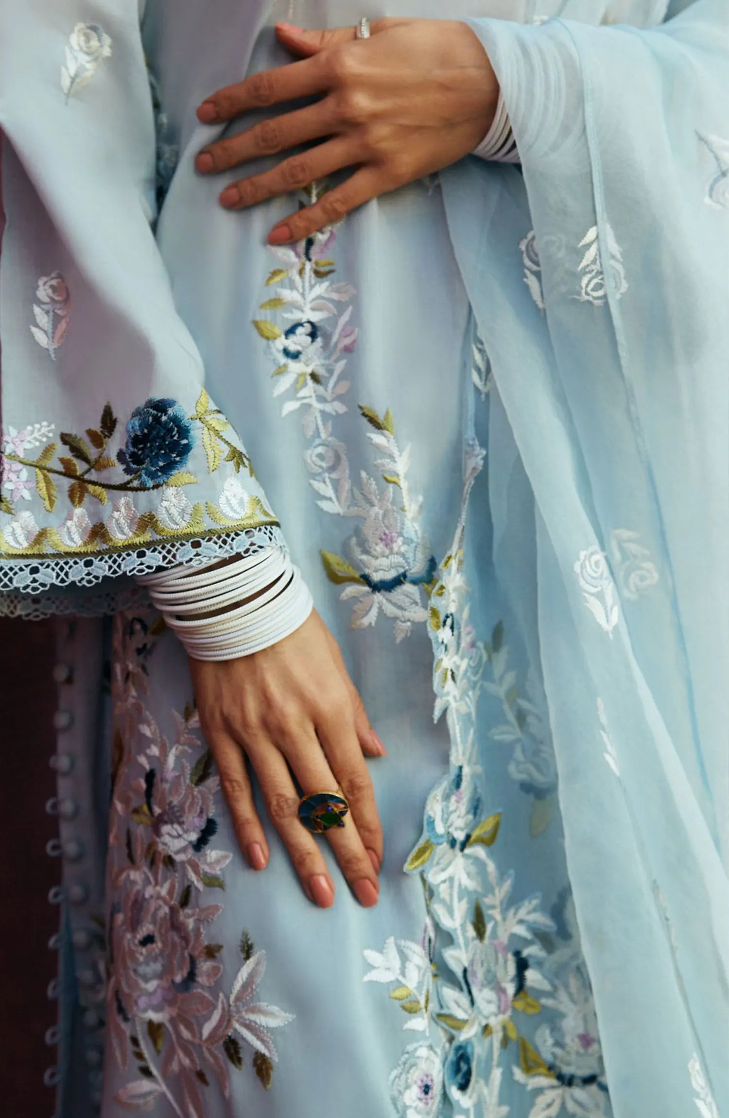 Cross Stitch Unstitched Premium Lawn Collection has been styled in the image for photography and illustrative purposes.