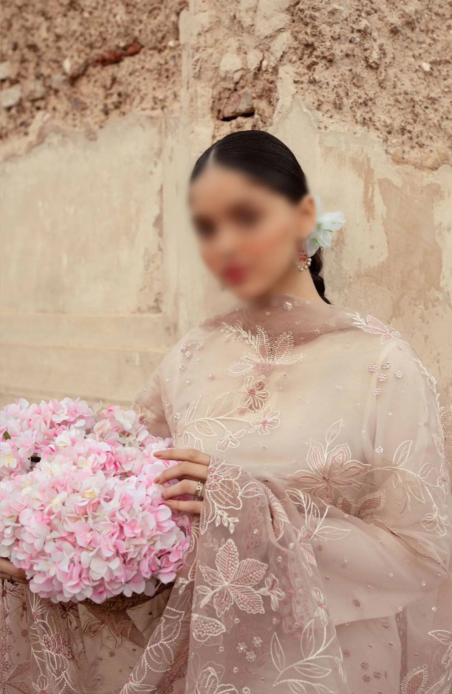 Cross Stitch Unstitched Premium Lawn Collection has been styled in the image for photography and illustrative purposes.