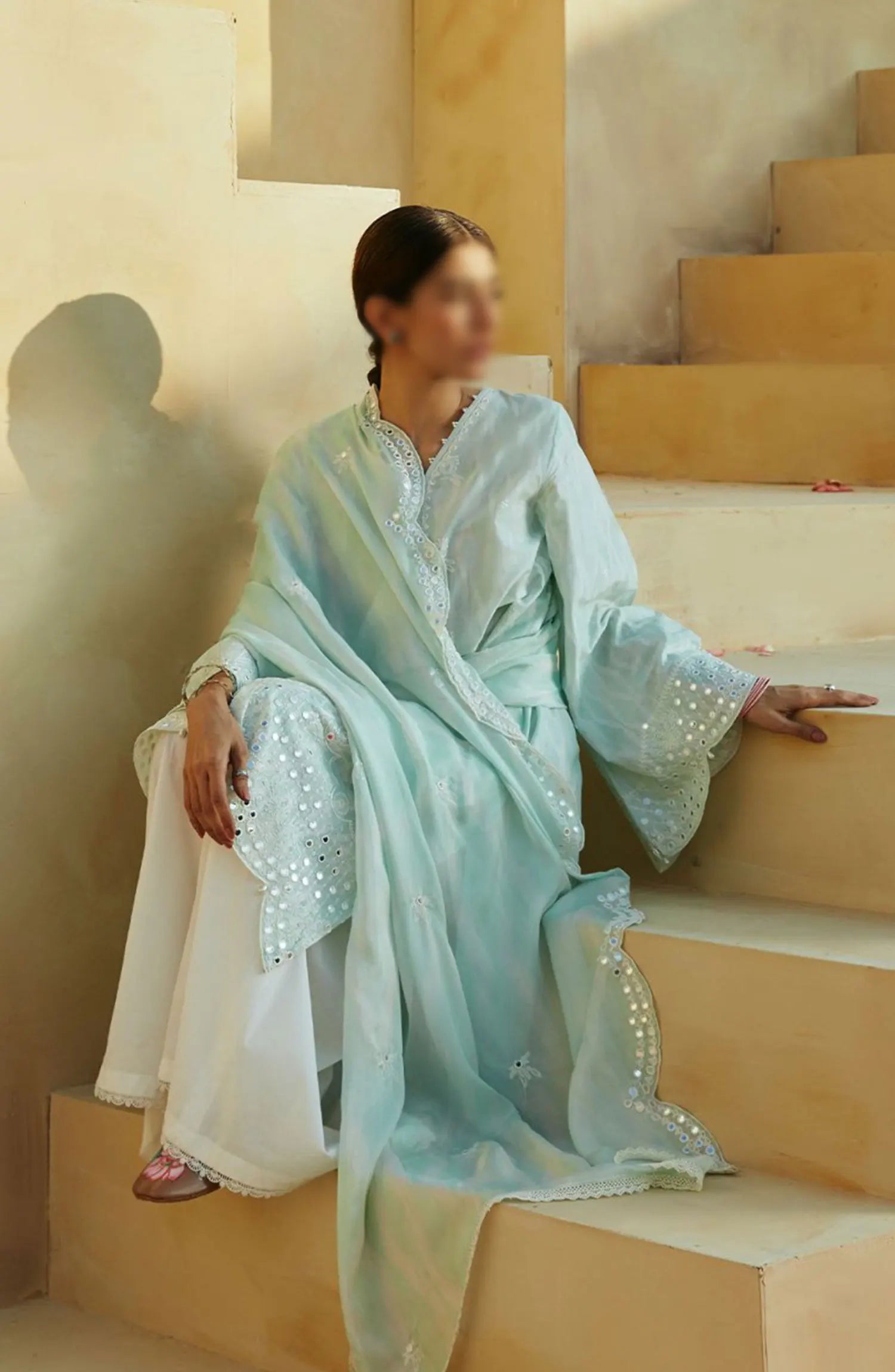 Cross Stitch Unstitched Premium Lawn Collection has been styled in the image for photography and illustrative purposes.