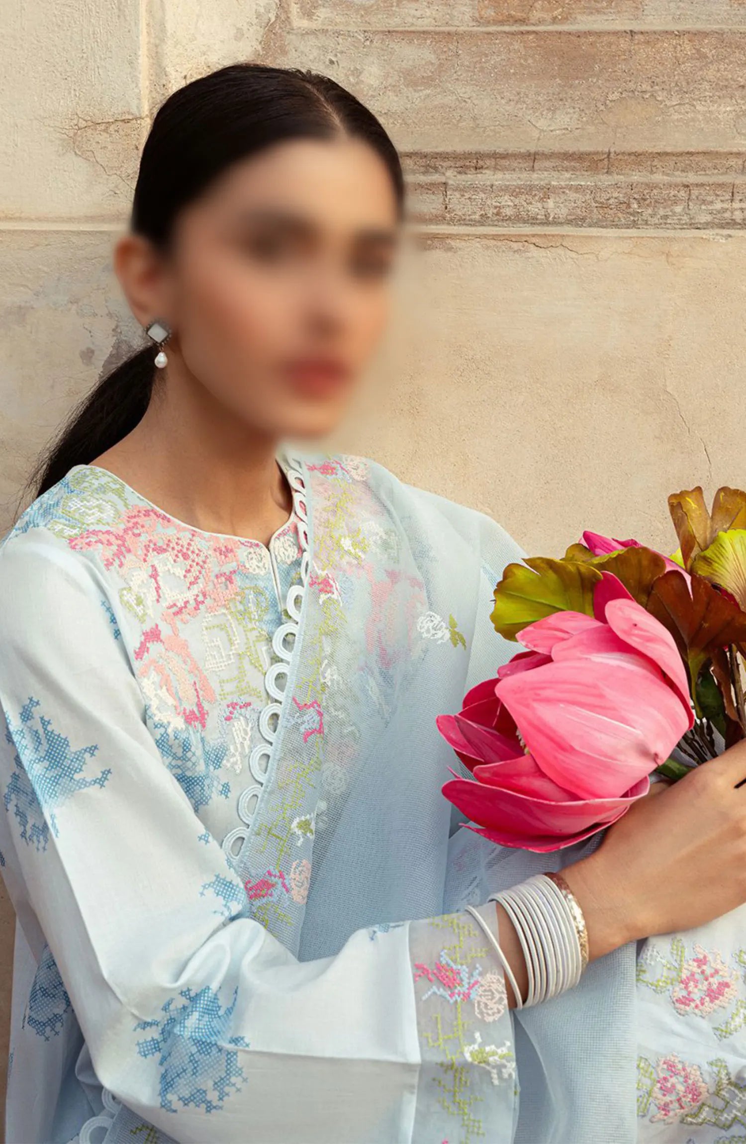 Cross Stitch Unstitched Premium Lawn Collection has been styled in the image for photography and illustrative purposes.