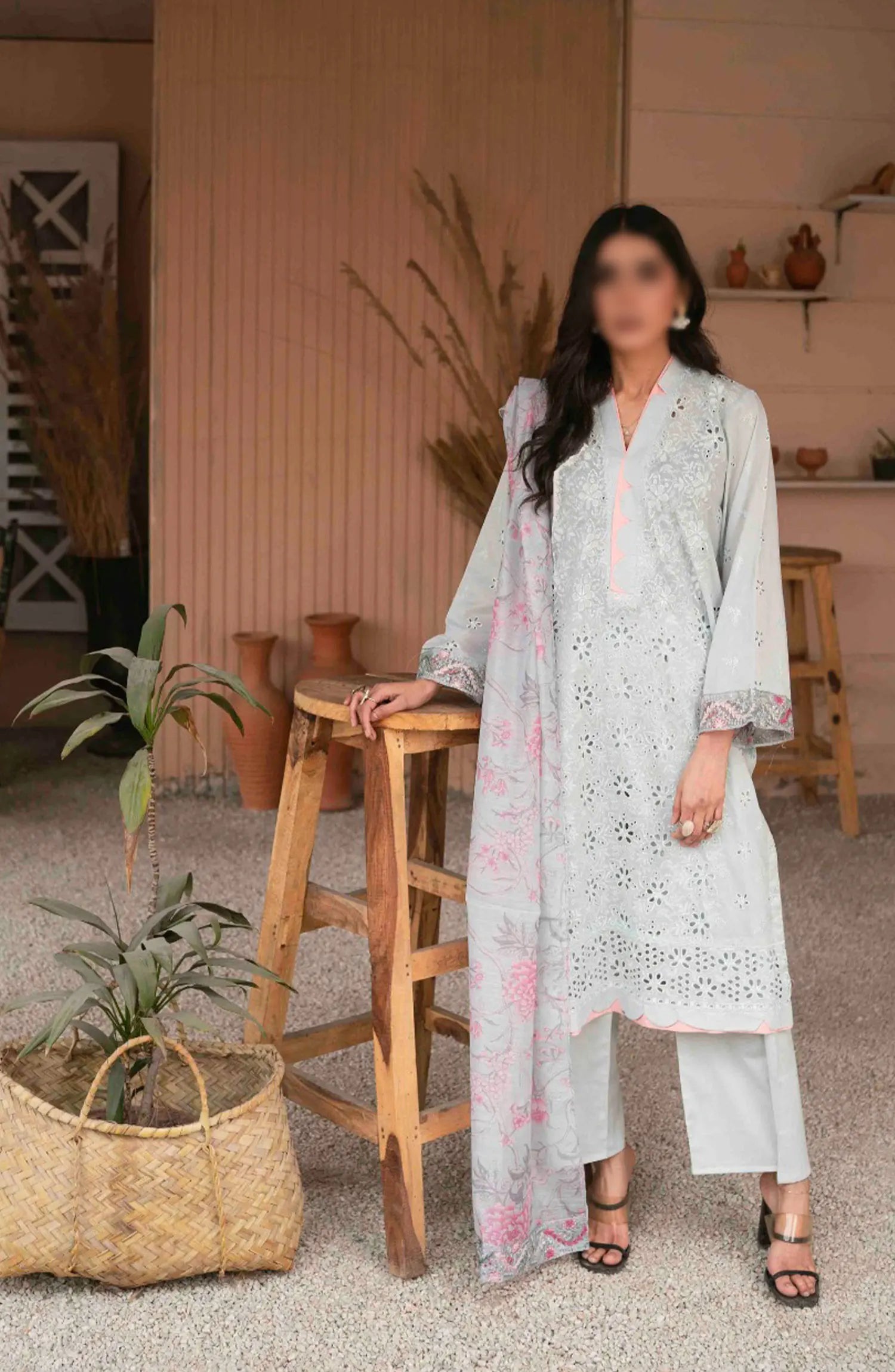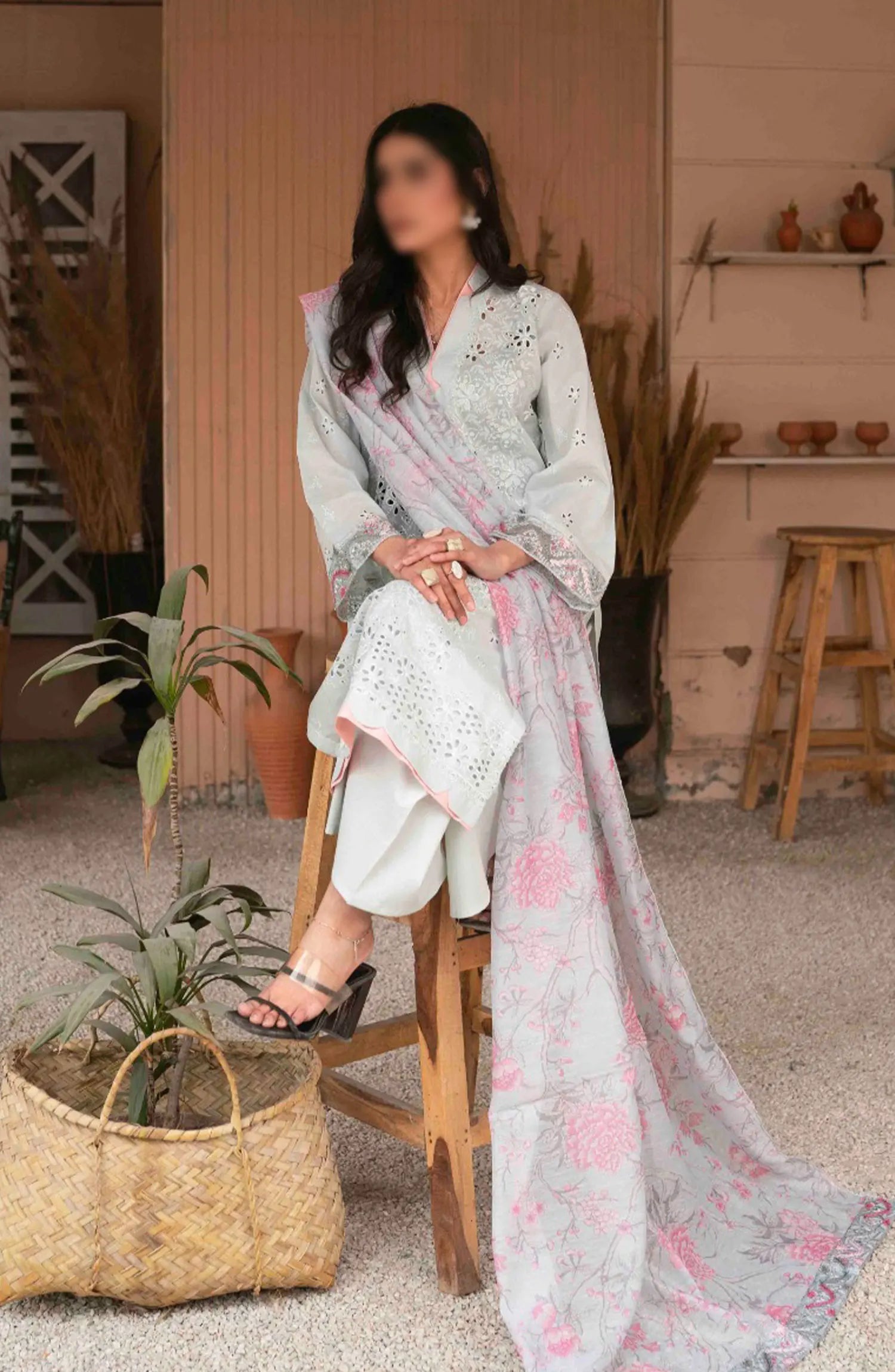 CutWork Embroidered Slub Lawn Collection by Marjjan has been styled in the image for photography and illustrative purposes.