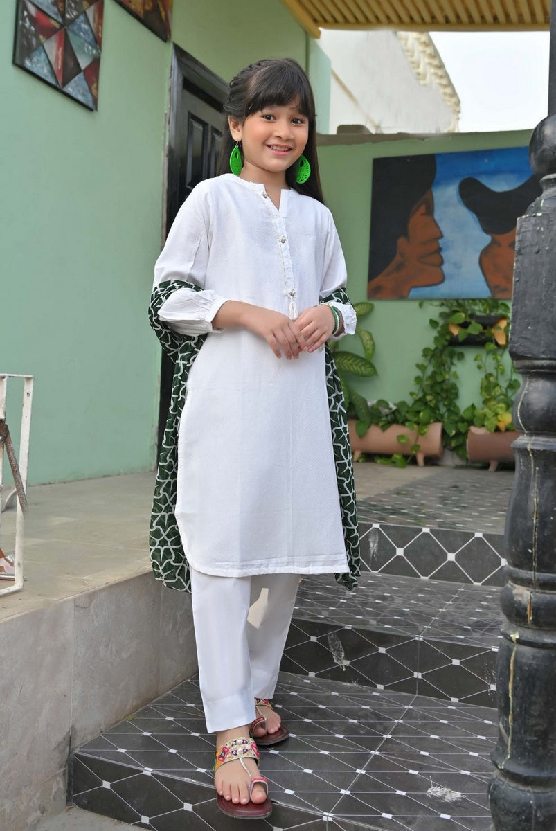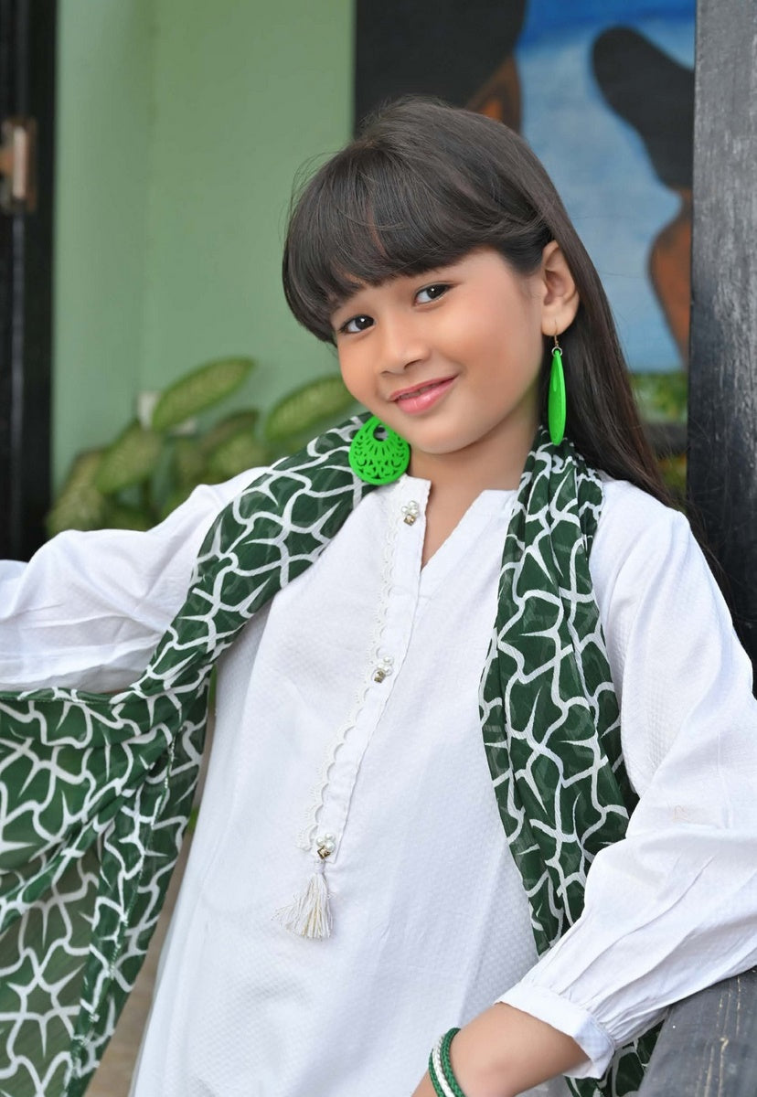 JASHAN-E-AZADI Stitched 2 Piece Jacquard Mother Daughter Collection 2023 has been styled in the image for photography and illustrative purposes.