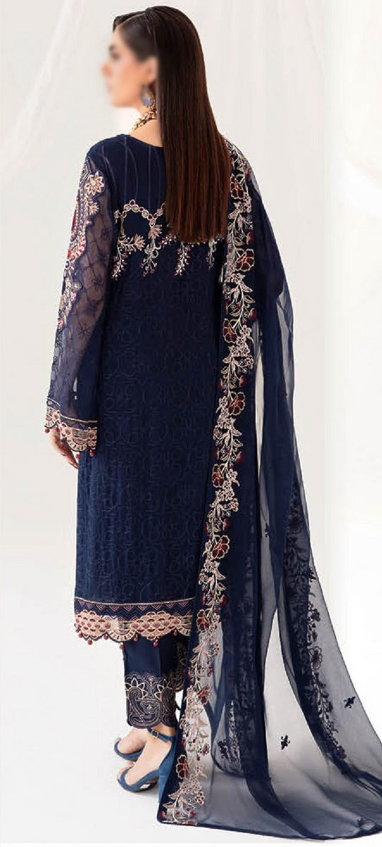 3 Piece Embroidered Luxury Bamber Chiffon Suit .