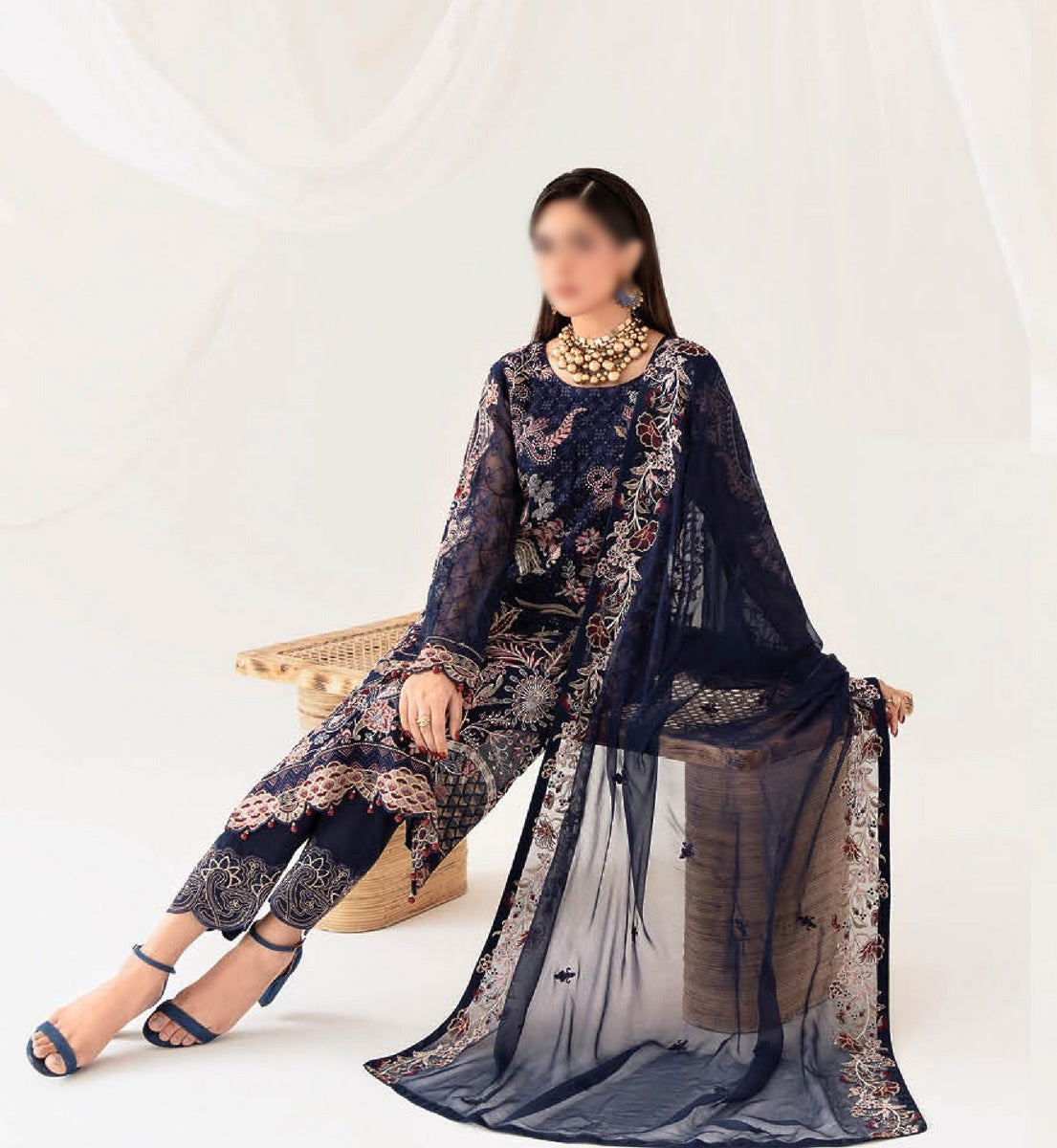 Ramsha Rangoon Luxury Bamber Chiffon Collection Vol 10 2023 has been styled in the image for photography and illustrative purposes.