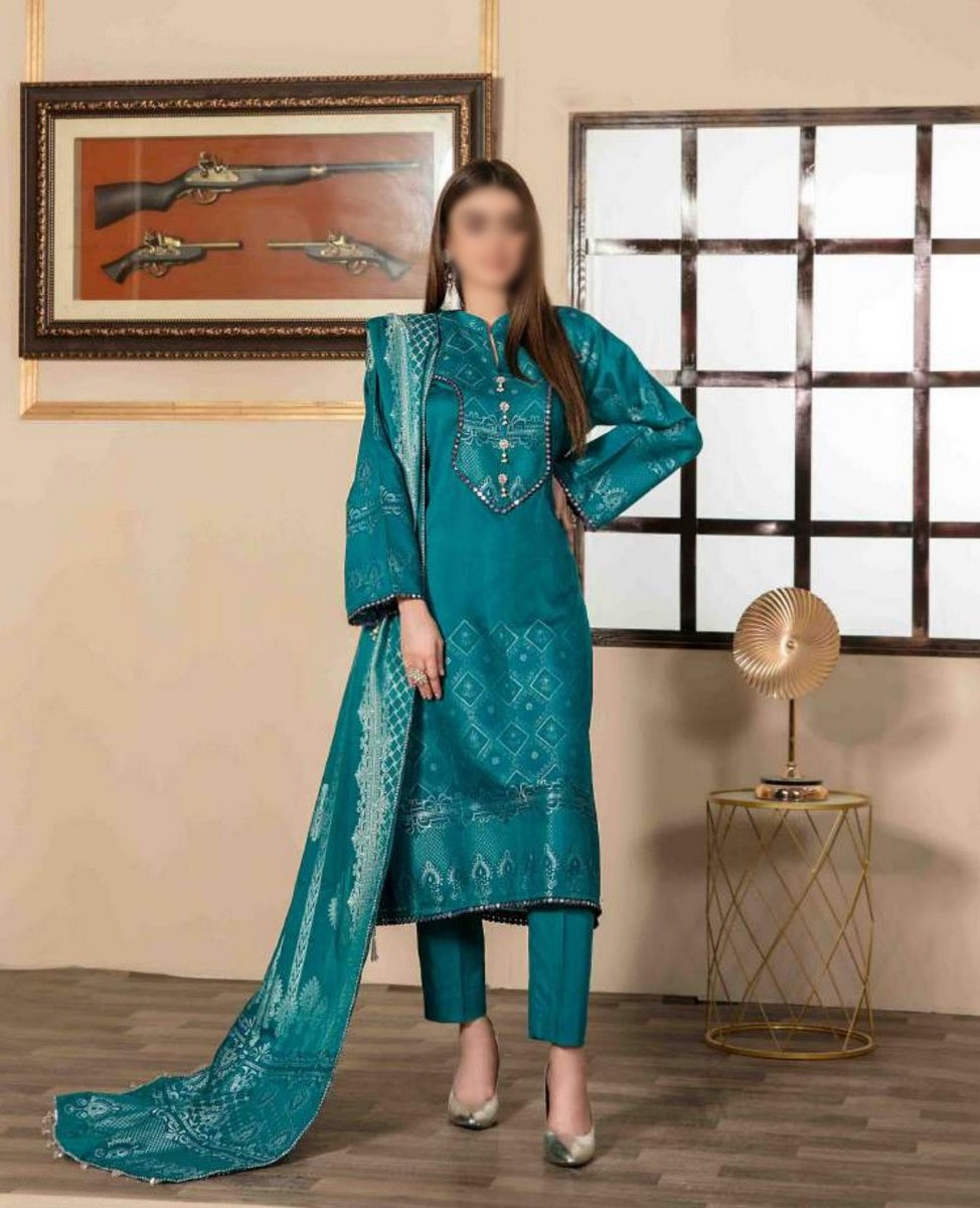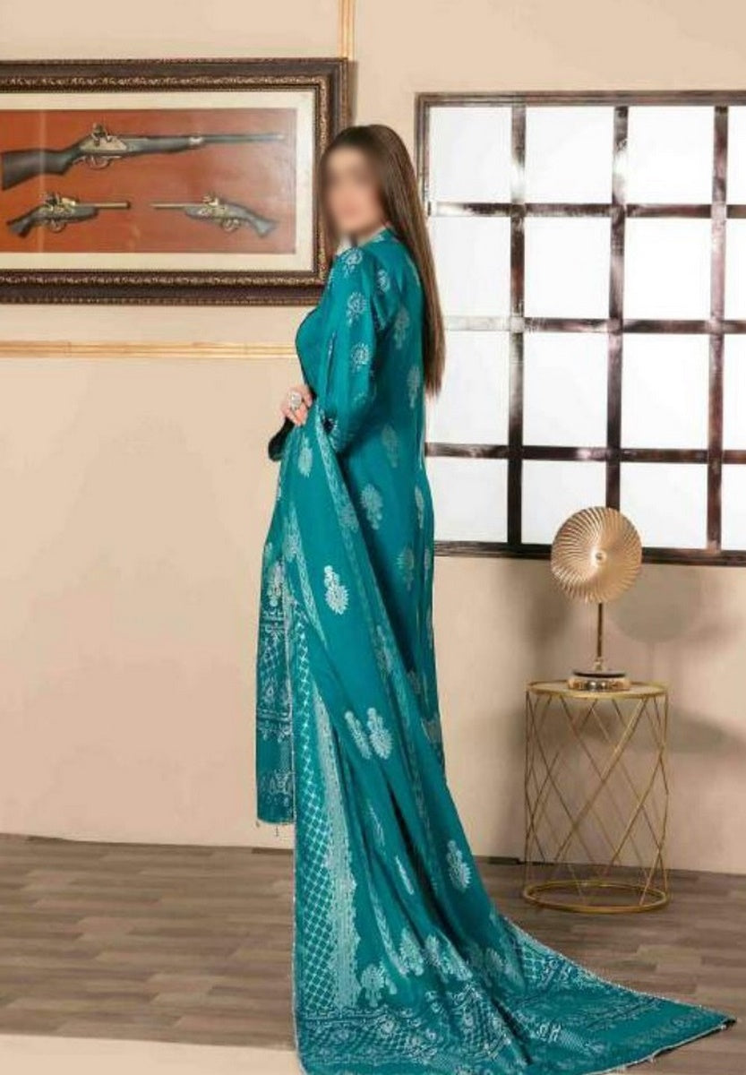The standard style comes as a long-sleeved kameez with dupatta and trouser/shalwar.