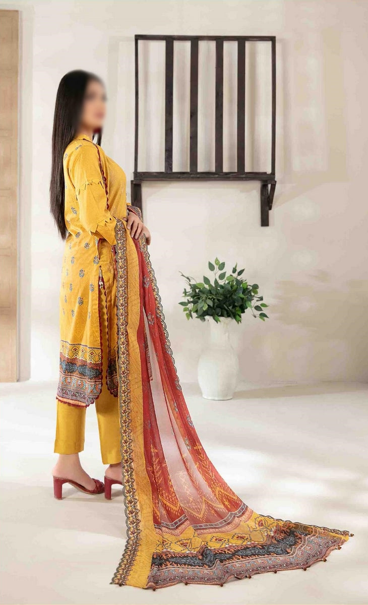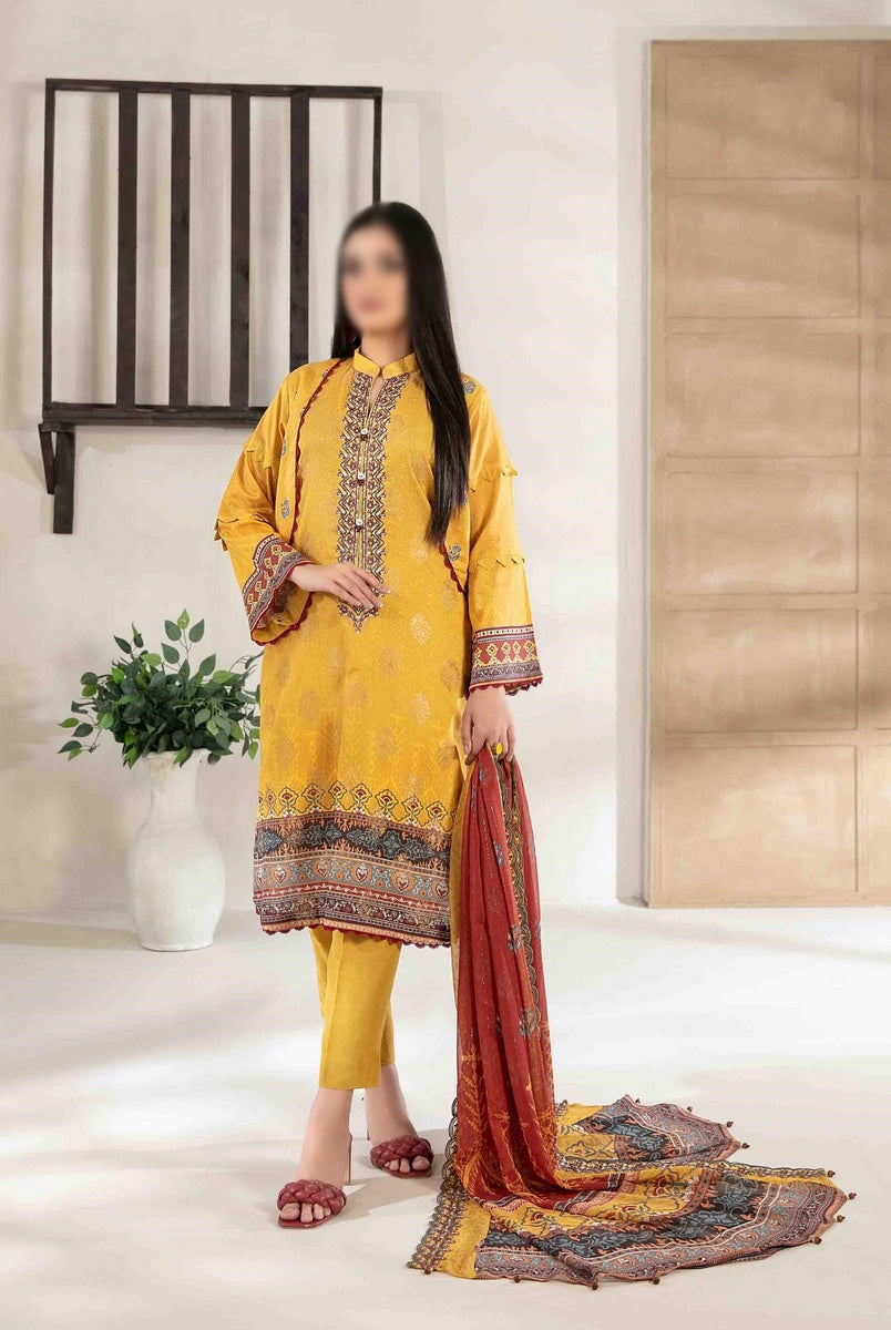 Embroidered Digital Printed Chiffon Dupatta & Unstitched Plain Cotton Shalwar Fabric????
