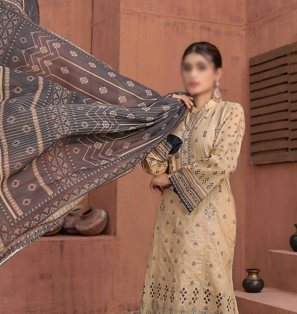 SAAJA Embroidered Digital Printed Lawn Collection 2023 has been styled in the image for photography and illustrative purposes.