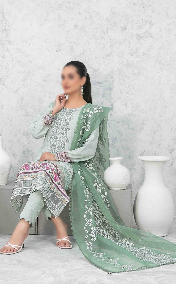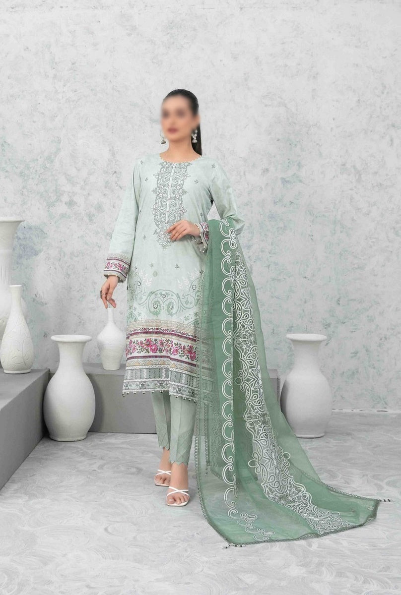 Semi/Un-Stitched Fancy Embroidered Lawn Shirt with embellishments