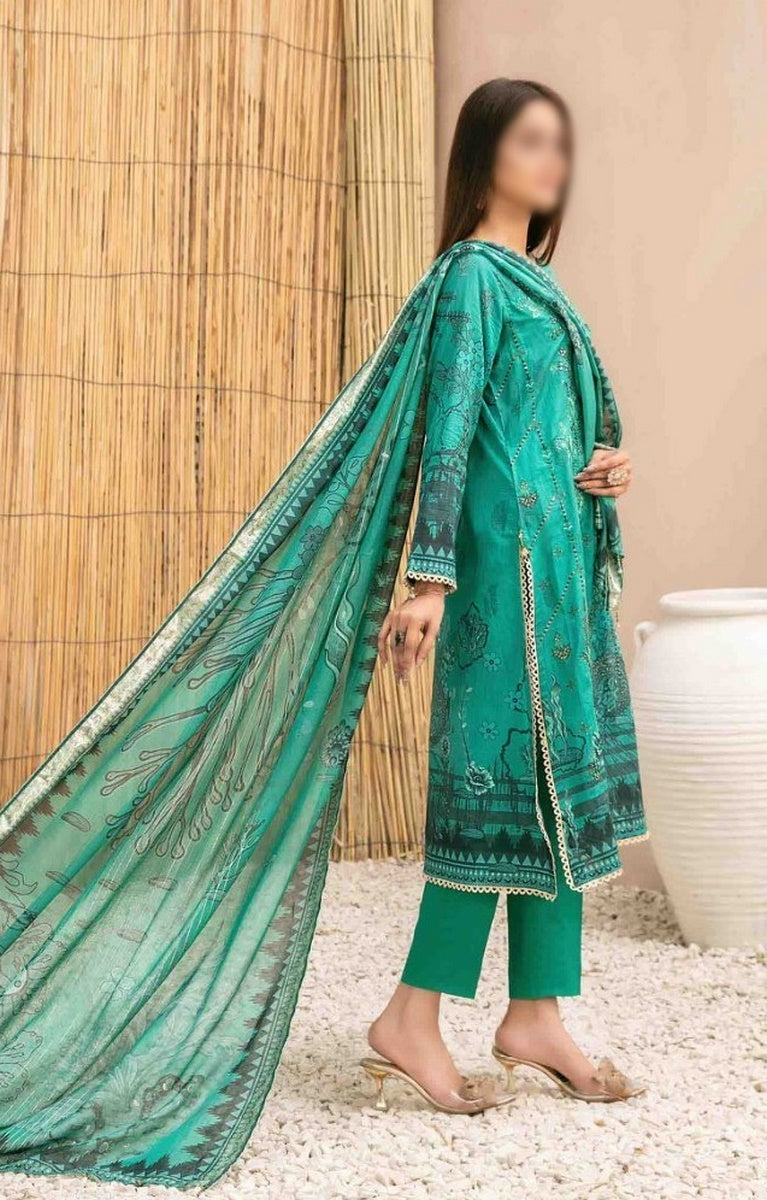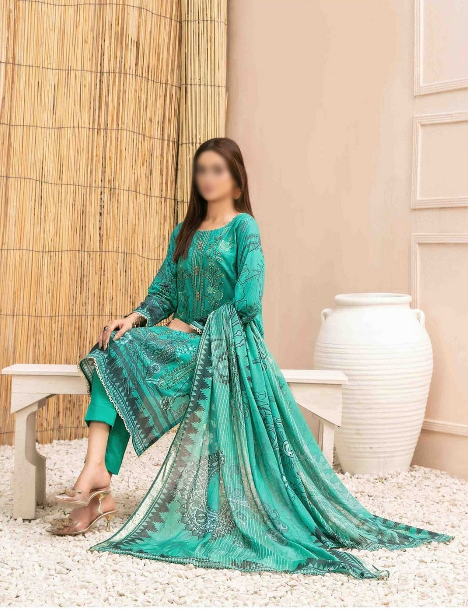 Un-Stitched Embroidered Digital Printed Slub Lawn Shirt
