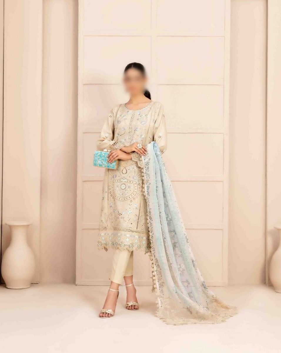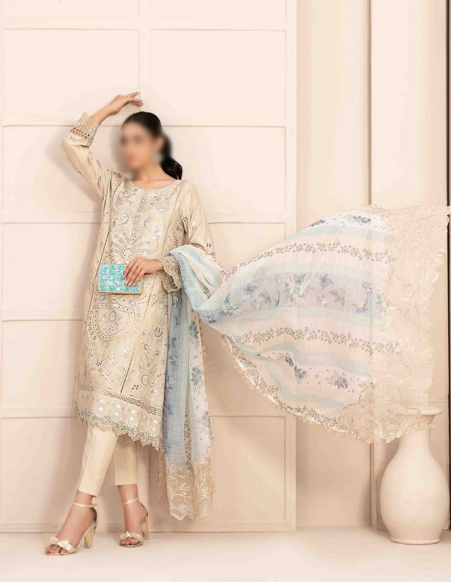 ZAREN Fancy Embroidered Viscose Jacquard/Plain Shirt - Exclusive Fancy Dupatta Collection 2023 has been styled in the image for photography and illustrative purposes.