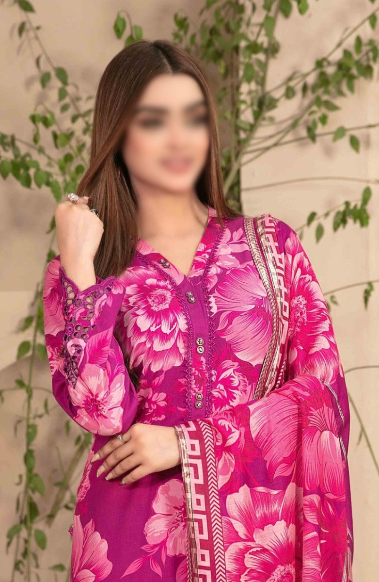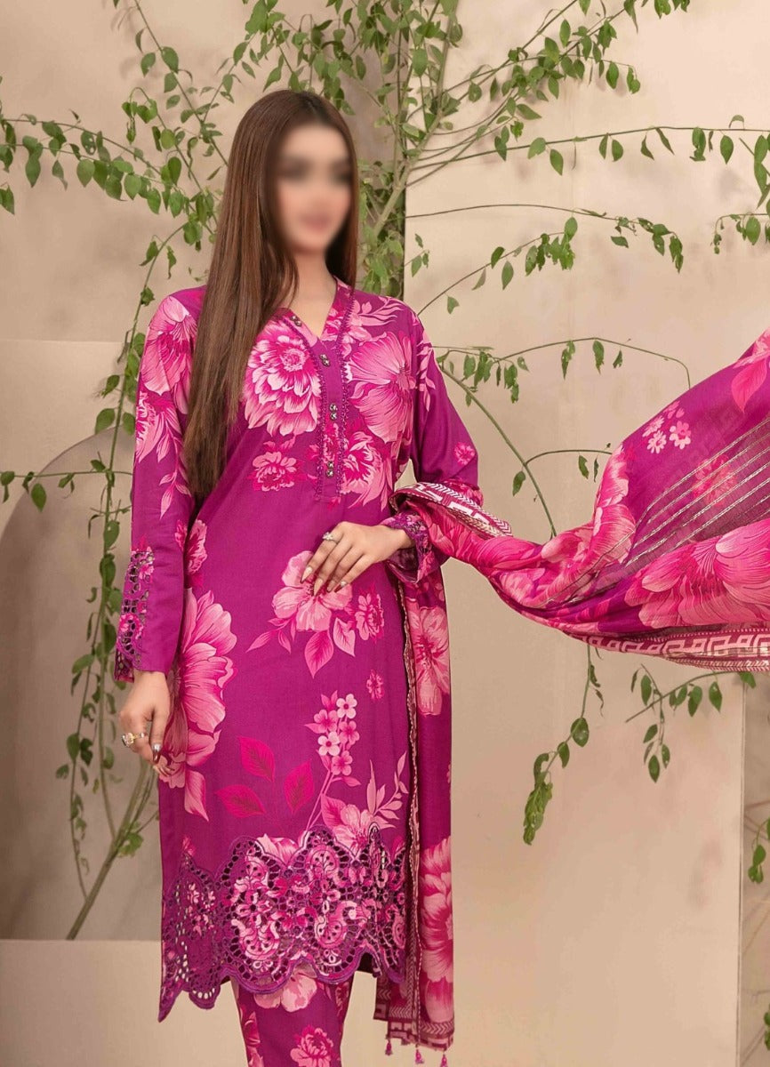 Un-Stitched Schiffli Daman Embroidered Digital Printed Staple Shirt. Digital Printed Diamond Dupatta. Unstitched Digital Printed Staple Shalwar.