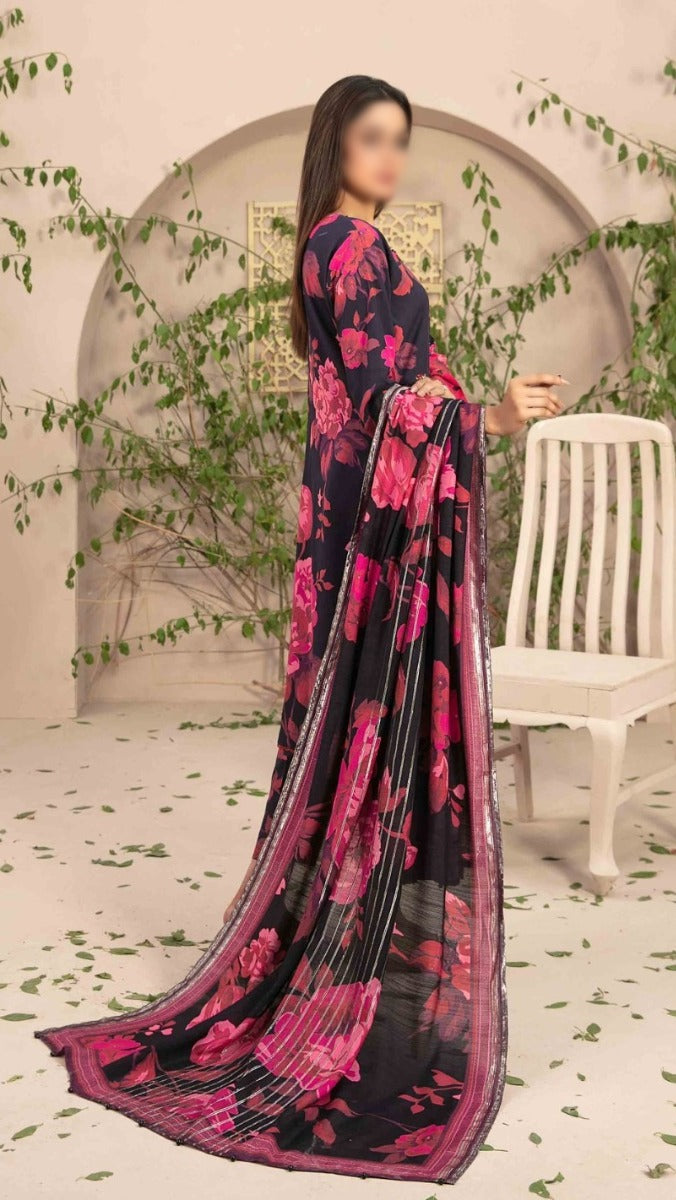 Amna Khadija Embroidered Crinkle Chiffon Unstitched 3 Piece Suit - D-03 - AM25LXC - Blue - Formals Collection