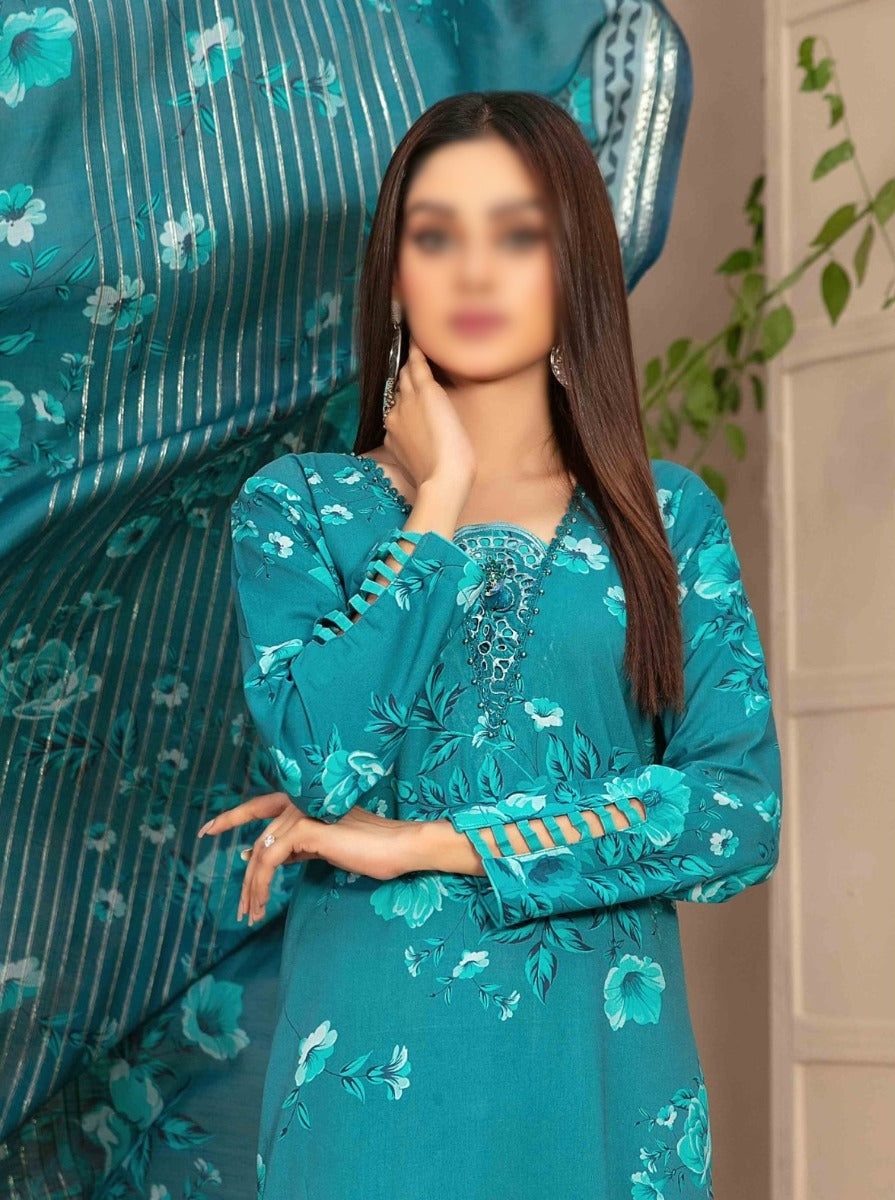 Amna Khadija Embroidered Crinkle Chiffon Unstitched 3 Piece Suit - D-03 - AM25LXC - Blue - Formals Collection